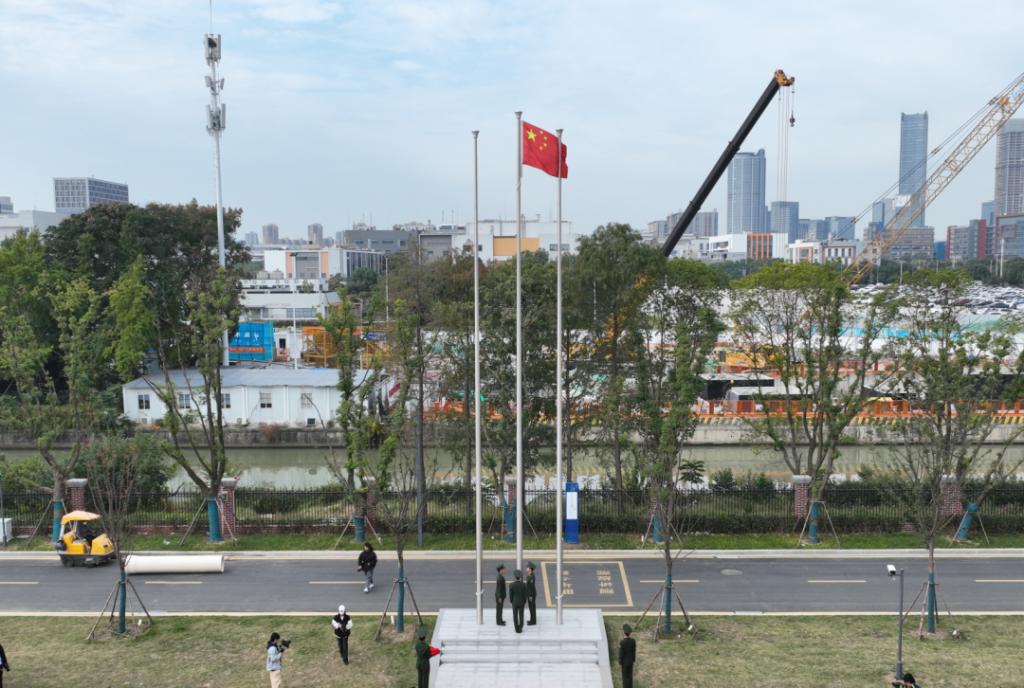 在所有师生的注目下,现场奏响了激昂的国歌,举行了庄严的升旗仪式。