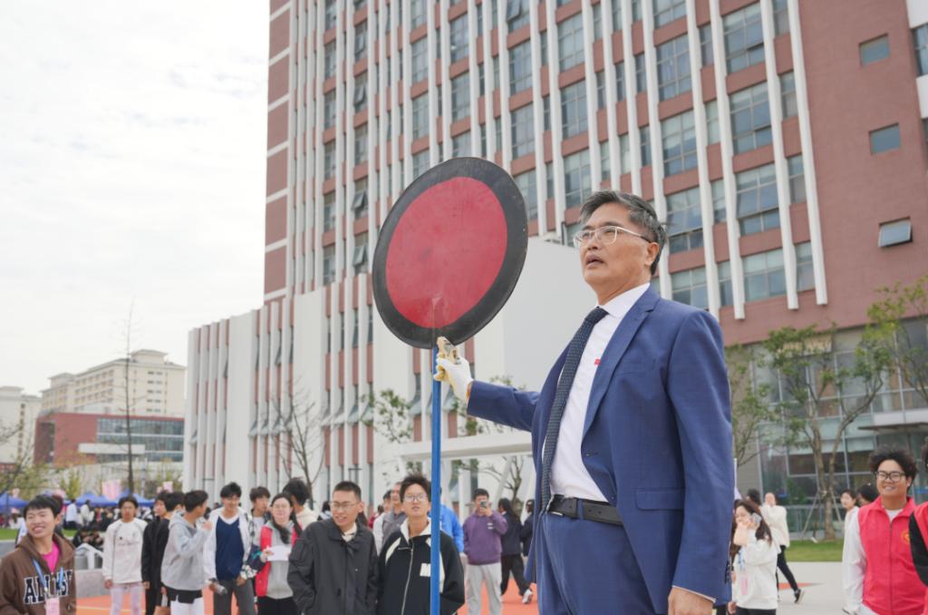 严世清宣布本届运动会正式开幕,并为首个比赛项目男子教工100米比赛鸣枪。