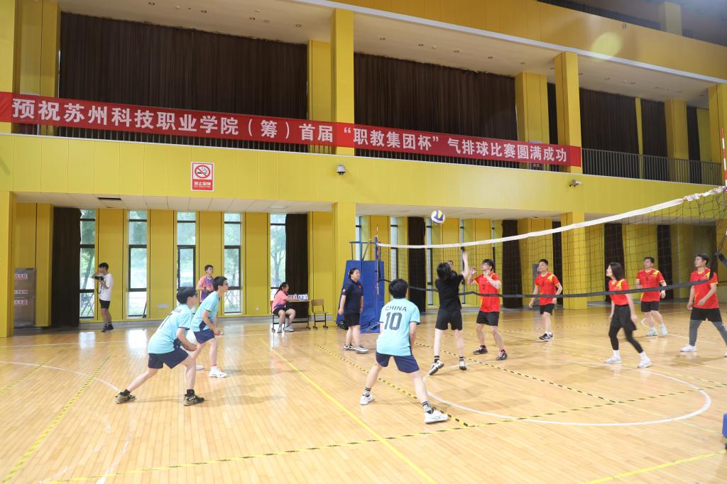 在2023年职业教育活动周期间,为活跃校园体育文化氛围,体现新时代大学生的精神风貌,促进校企合作,5月17日下午,由我校主办,中国服务外包产教联盟、苏州市服务外包职教集团、江苏阅衡智能科技有限公司协办的首届“职教集团杯”气排球大赛在学校体育馆开赛。我校党委书记、校长严世清出席开幕式并致辞。体育艺术工作部部长吴旭、学工处处长王凯、校团委及各二级学院相关负责人、辅导员等师生参加了开幕活动。体育艺术工作部副部长于海娟主持开幕式。