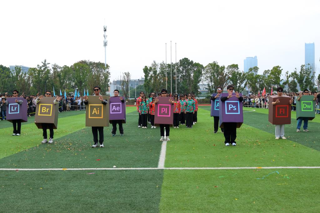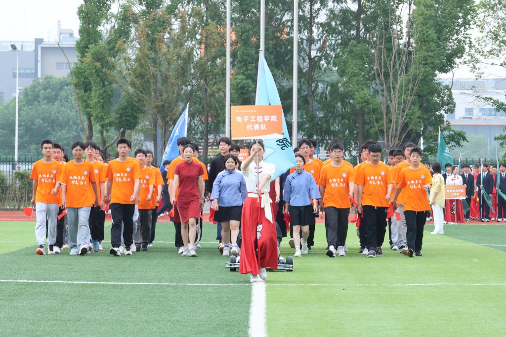 随后,教工代表队及四个学院代表队分别用各具特色的形式步入场地。他们步伐铿锵有力,特色表演热情洋溢,充分展现了新时代青少年的朝气与风貌。这些表演不仅展示了同学们的才艺,更体现了他们团结协作、勇于挑战的精神风貌。