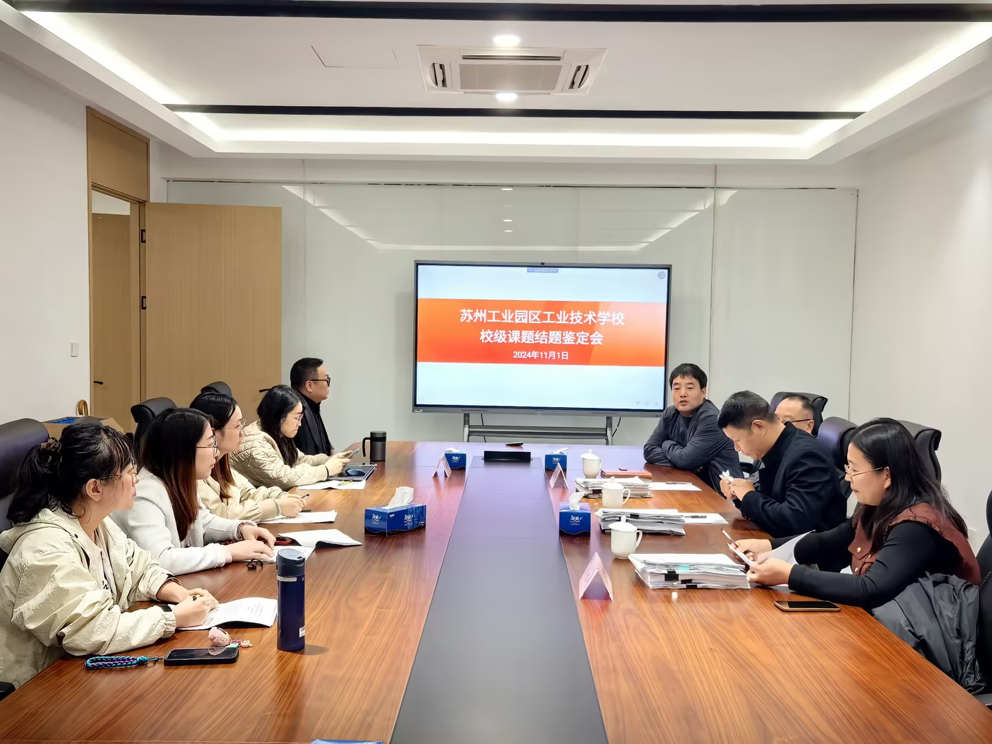 本次论证会共分为三个组别,分别由苏州农业职业技术学院科技处处长司文会、苏州工业职业技术学院高教所所长刘绪军、苏州工业园区服务外包职业学院科研处处长孙建以及我校6名校内学术委员组成的专家鉴定组出席会议。论证会共涉及17项校级课题,包括11项校级科研课题和6项校级教改课题。