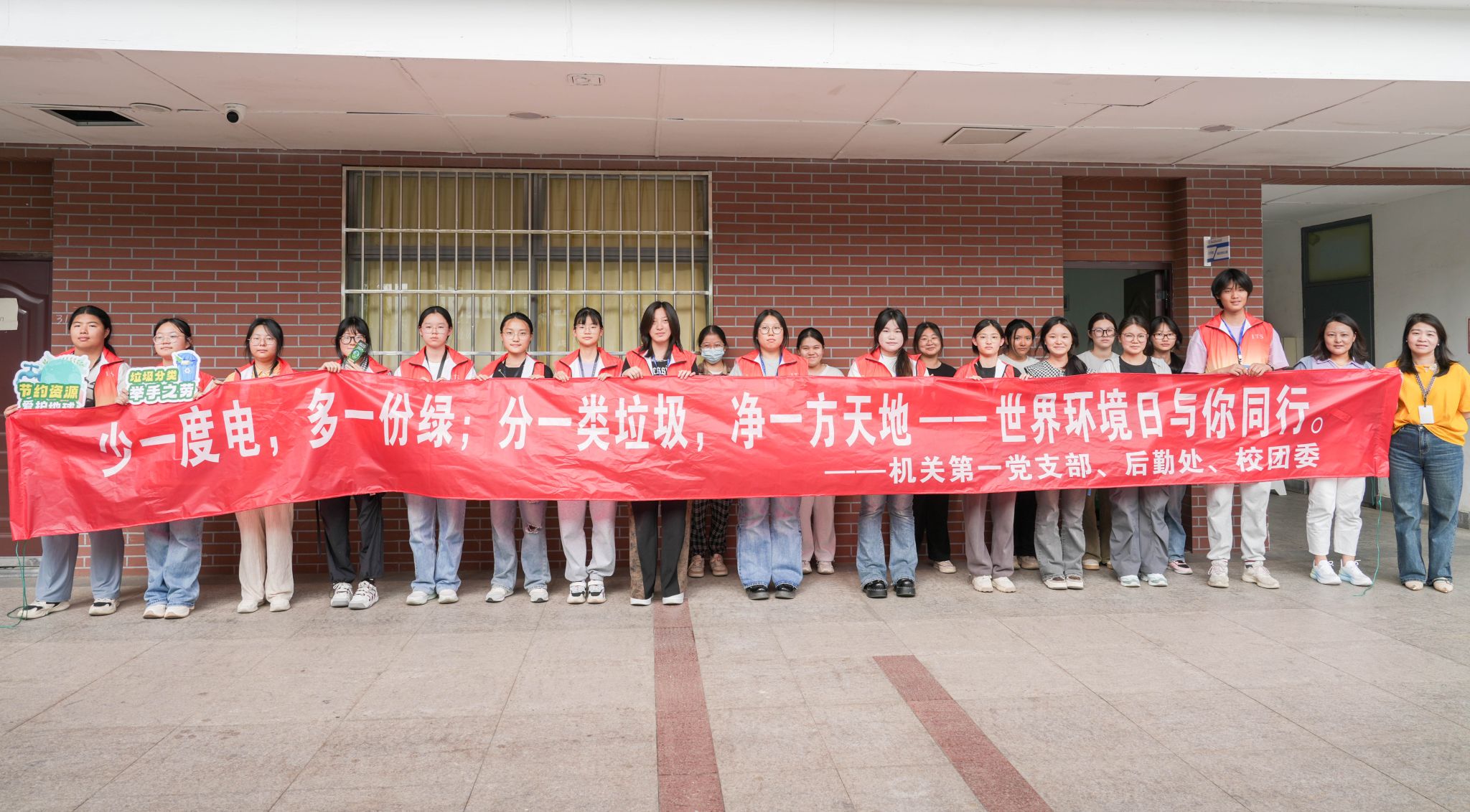 6月5日世界环境日当天,我校以“美丽中国我先行,终结塑料污染”为主题,开展环保主题互动游戏、短视频比赛等系列活动,机关第一党支部、后勤处、校团委协同组织,全校师生积极参与,共绘绿色校园新画卷。