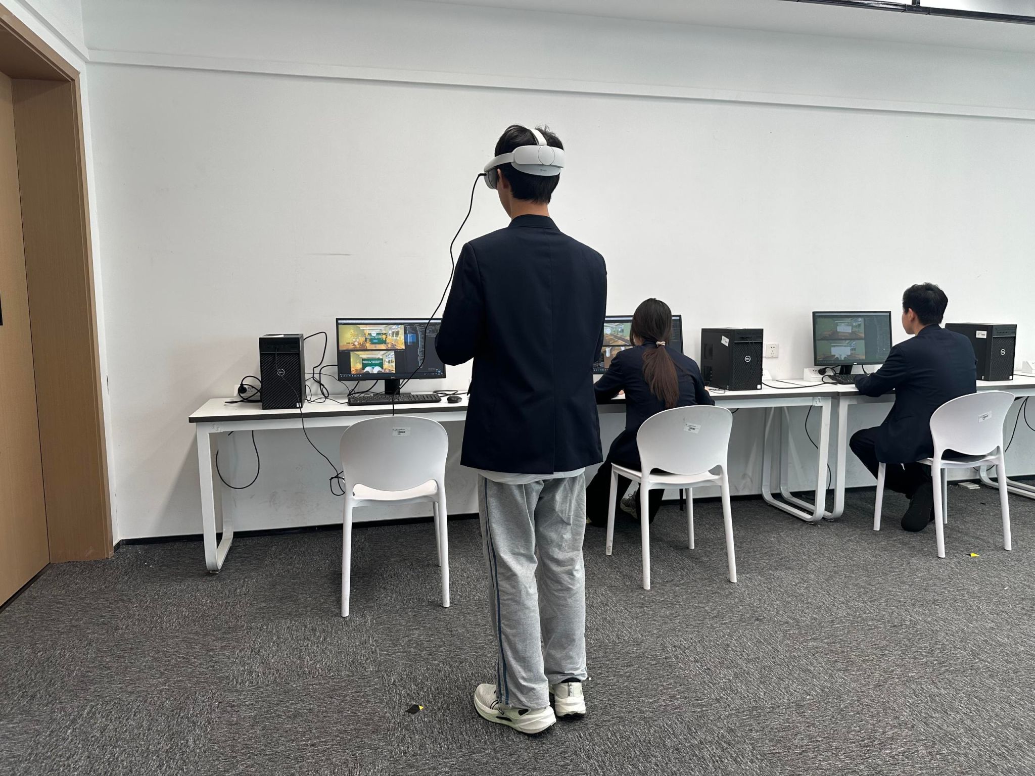 本次获奖项目创意源于团队对传统消防教育痛点的关注,指导老师王强带领学生顾明月、刘俊泽、庄浩冉经前期调研论证,最终确定“沉浸式演练+智能评估”核心方向,为创意落地奠定扎实基础。开发阶段,团队成员各司其职攻克难题:顾明月统筹系统架构、环境搭建、场景规划及技术选择与开发流程;刘俊泽查阅大量资料研究场景特点需求,同时负责用户界面(UI)设计与设备调试,累计完成30余次界面优化,经数周调试解决设备兼容性问题;庄浩冉承担温度监测、知识问答系统逻辑设计等算法实现关键任务。师生利用课余及假期刻苦钻研,通过无数次测试调整确保系统严谨性。路演打磨阶段,团队从校级选拔到现场复赛先后开展8次路演,针对评委提出的“试用效果需数据支撑”等意见,迅速调整策略,通过问卷收集、整理分析数据,进一步强化项目说服力。