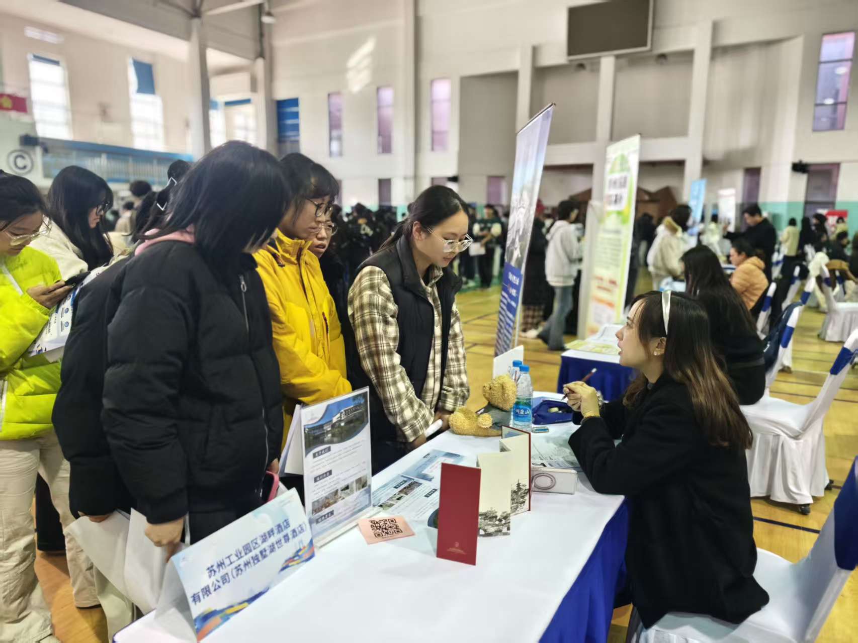 11月26日下午,暖阳映照下的善时楼体育馆内人声鼎沸、气氛热烈,我校2025年校园招聘会在此隆重举行。本次活动由新时代苏州工业园区产业工人队伍建设改革联席会议办公室(总工会)指导支持、我校主办,成功吸引60余家优质用人单位入驻,为我校2021级670名应届毕业生搭建了精准对接、双向选择的就业桥梁。