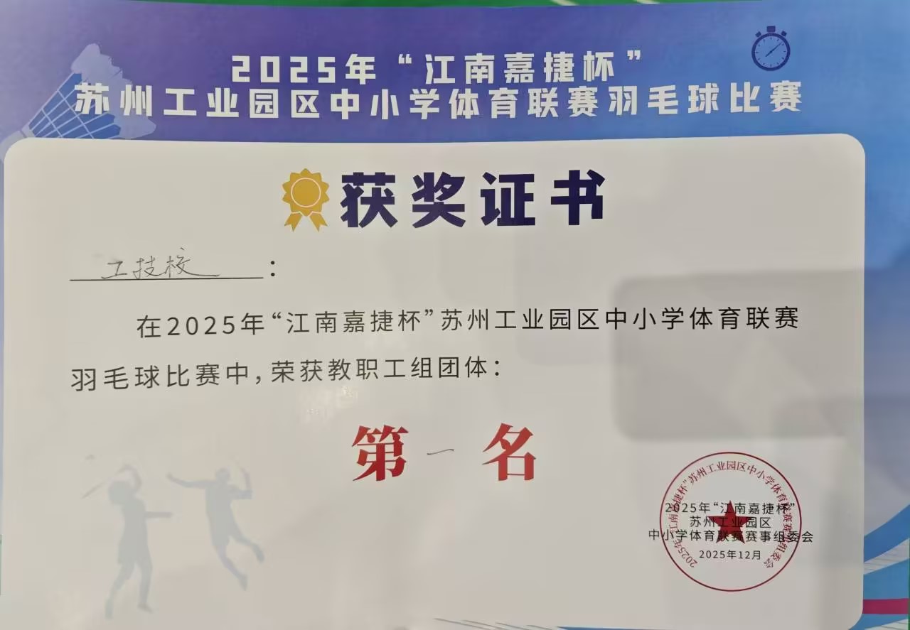 12月5日下午,2025年“江南嘉捷杯”苏州工业园区中小学体育联赛教职工组羽毛球比赛落幕。我校教职工羽毛球队在数十支参赛队伍中崭露头角,凭借精湛的球技、默契的团队协作和顽强的拼搏精神,成功卫冕冠军,再次为学校赢得荣誉。这一成绩不仅彰显了我校教职工在体育竞技领域的实力,也体现了团队凝聚力和积极向上的精神风貌。
