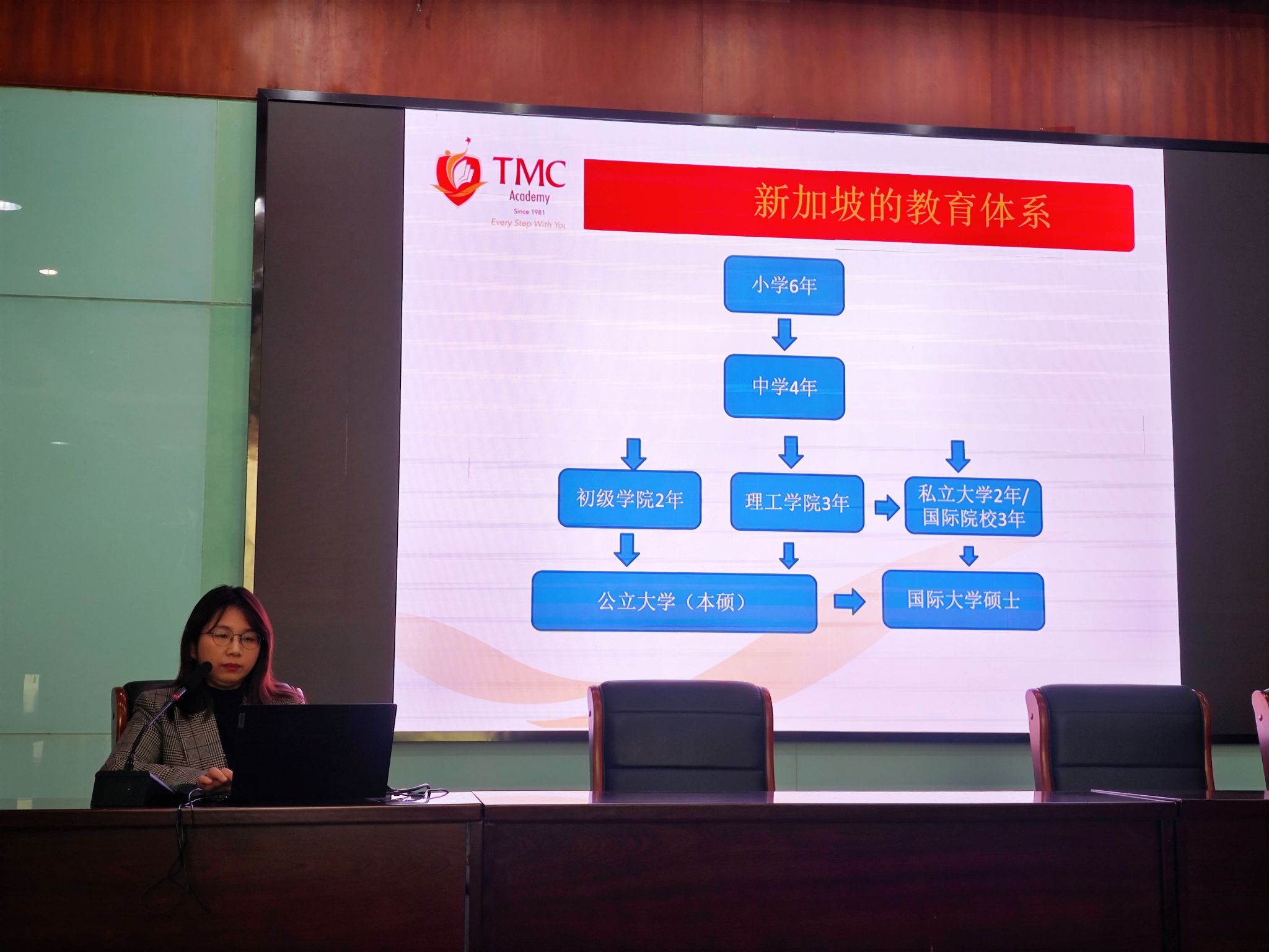 本次分享会围绕三大核心内容展开:五年制大专升学路径深度解析、新加坡两大核心留学项目精准推介、雅思托福备考靶向赋能。新加坡TMC学院合作负责人赖利珍老师精准把握学生及家长最关切的问题,围绕新加坡留学项目的学历衔接规则、申请条件、办理流程规范、费用标准细则及学历认证核心要求展开系统解读。针对五年制大专学生学历提升路径困惑,青藤留学主理人吴欣怡老师通过政策解读、真实案例分析、现场互动答疑等多元形式开展全方位解答,为学子搭建起可靠的海外深造信息桥梁。