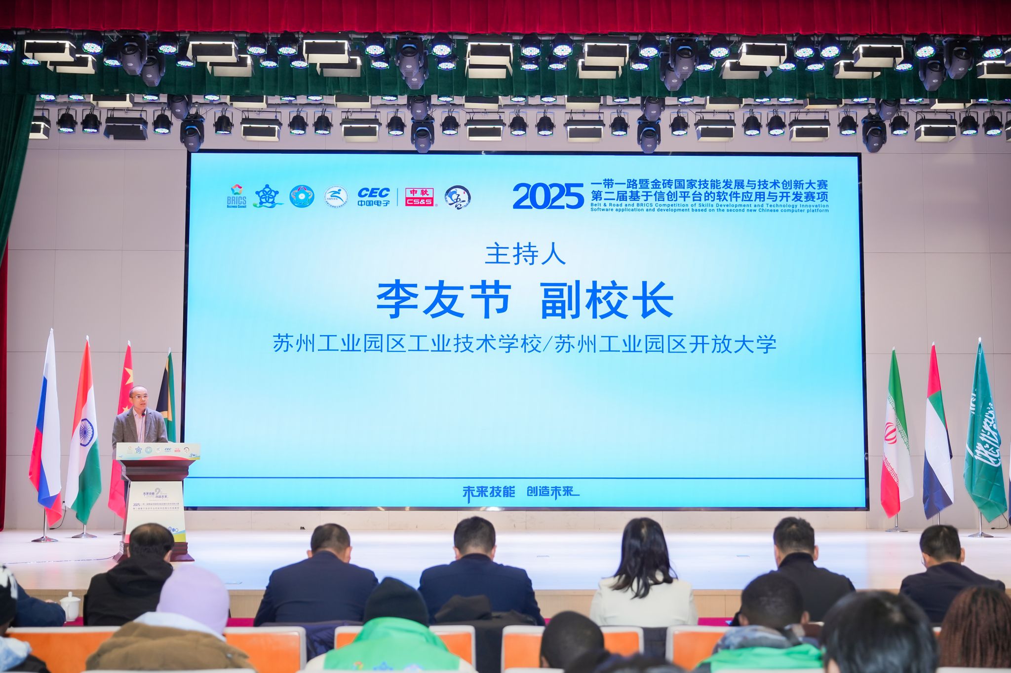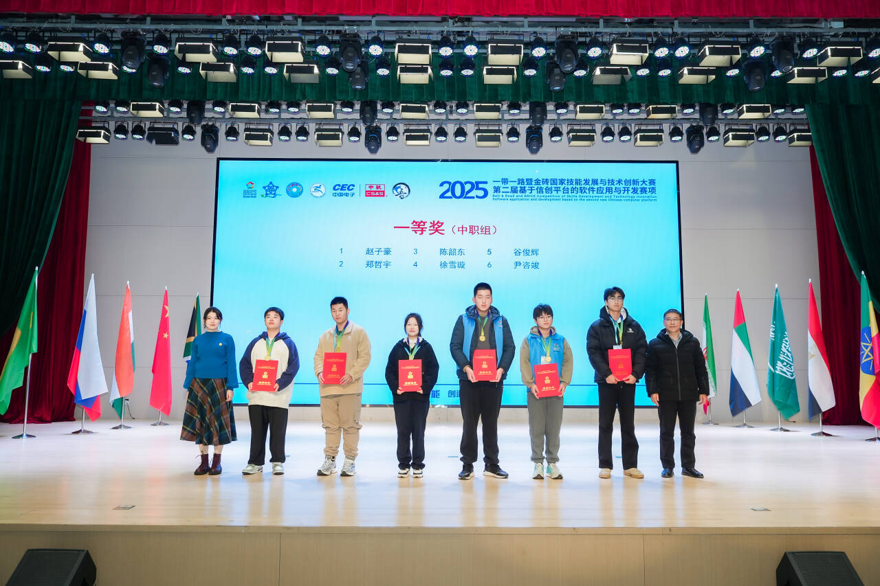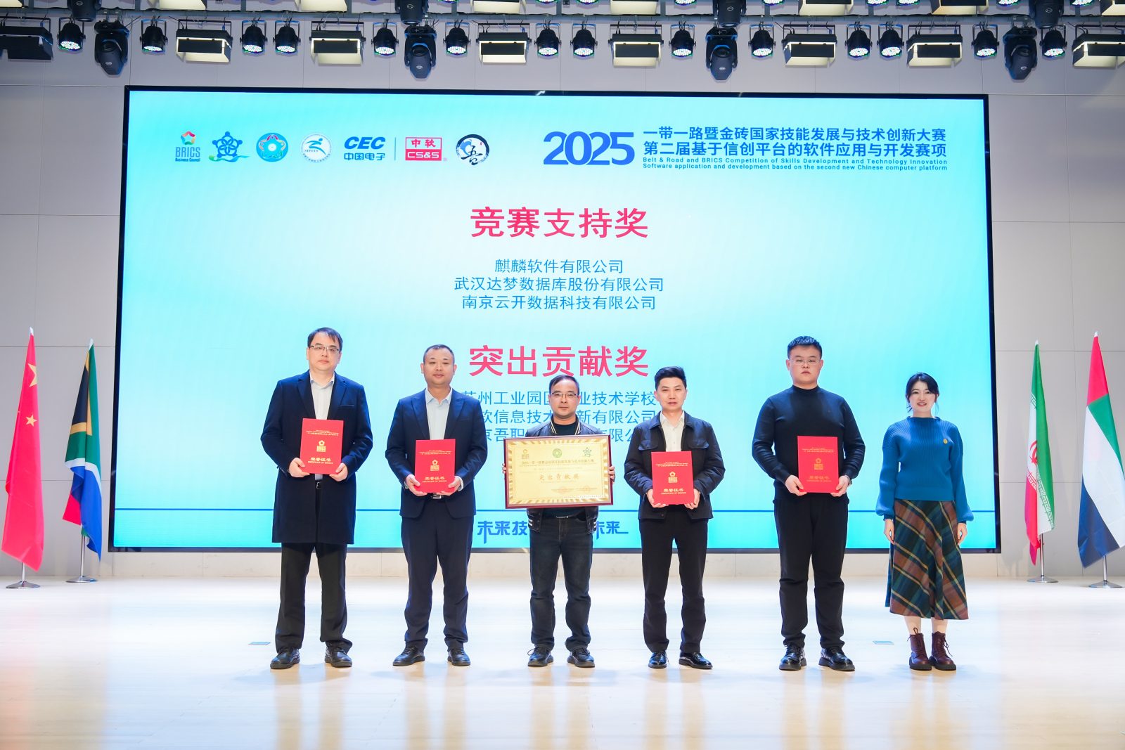 12月26日至28日,由金砖国家工商理事会中方理事会、一带一路暨金砖国家技能发展国际联盟等权威机构联合主办的2025一带一路暨金砖国家技能发展与技术创新大赛——第二届基于信创平台的软件应用与开发赛项总决赛在我校盛大举行。作为东道主,我校不仅组织师生踊跃参赛,更以卓越表现斩获一等奖3项、二等奖2项、三等奖1项,并包揽“最佳组织奖”“突出贡献奖”等团体殊荣,全面彰显了在信创领域“产教融合、赛教一体”的人才培养成效。