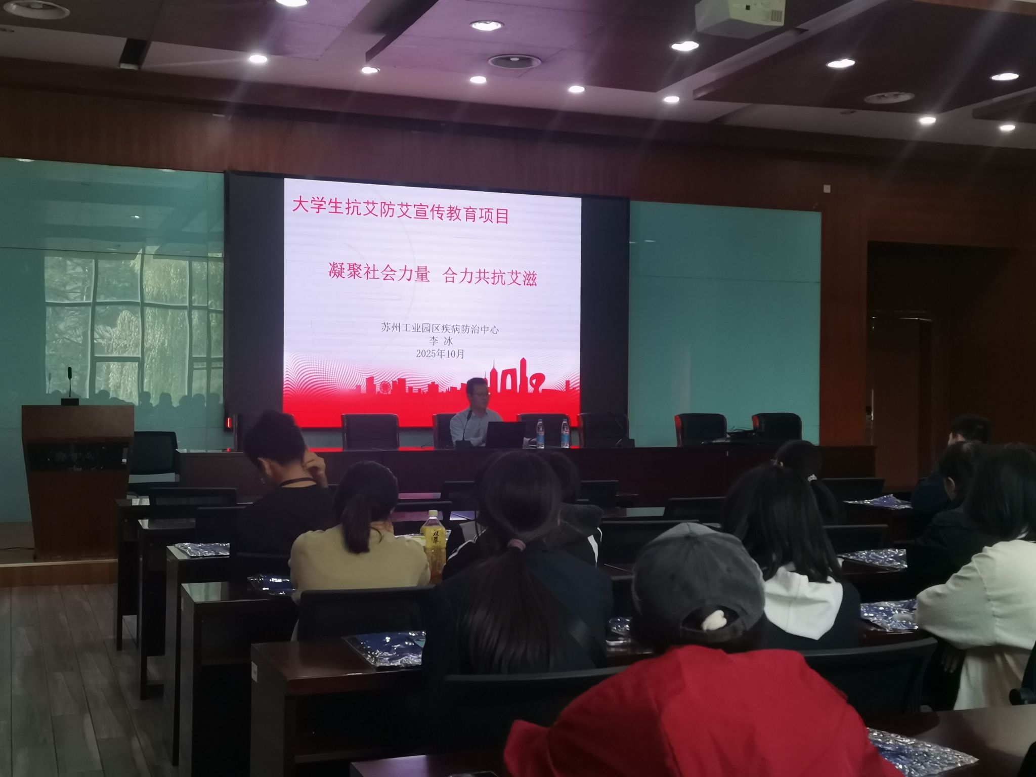 针对传统防艾教育形式单一、难以兼顾不同年龄段学生需求的问题,项目创新采用“分龄适配+同伴引领”的双重模式。2025年10月,学校从全校选拔60名责任心强、沟通能力突出的骨干学生(涵盖不同年龄段),邀请苏州工业园区疾病防治中心艾防科主任李冰开展分层专业培训。针对未成年学生,培训聚焦基础认知、日常防护等核心要点,规避敏感细节,强调自我保护的重要性;针对成年学生,适当拓展知识深度,补充责任担当与社会公益相关内容,让不同年龄段的骨干学生都能成为贴合同伴需求的防艾宣传“身边榜样”,有效拉近知识传播距离。