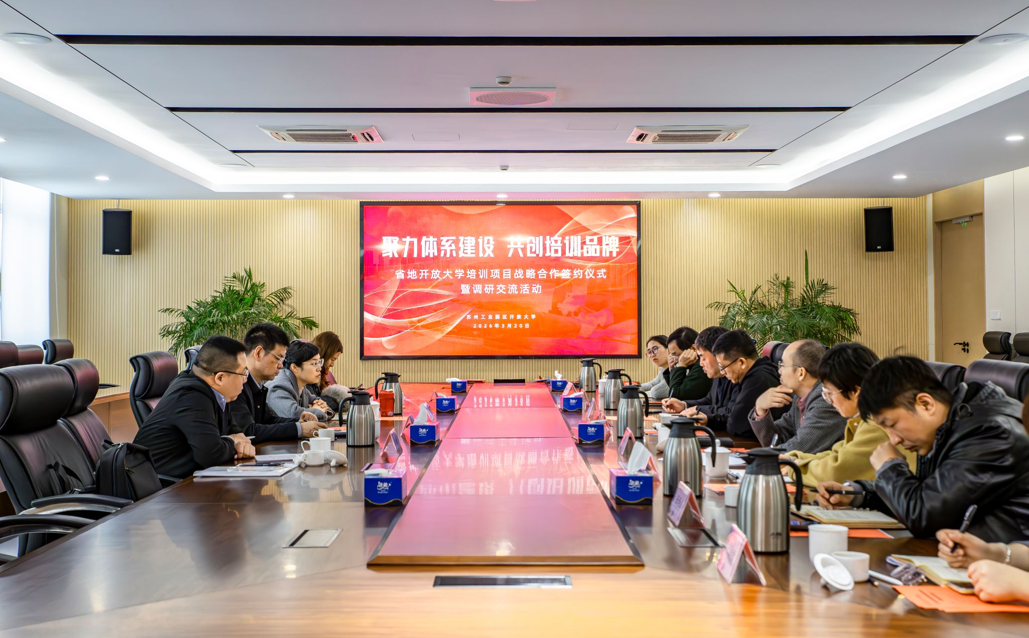 阳春三月,万物竞发。3月20日,聚力体系建设,共创培训品牌——省地开放大学培训项目战略合作签约仪式暨调研交流活动在苏州工业园区开放大学举行。江苏开放大学党委常委、副校长刘贵友,培训中心副主任张曌曌,培训中心培训科科长晏冰清,招生工作处招生科科长陆曦一行到访,园区开放大学校长权俊良、副校长李友节及相关处室人员参加活动。