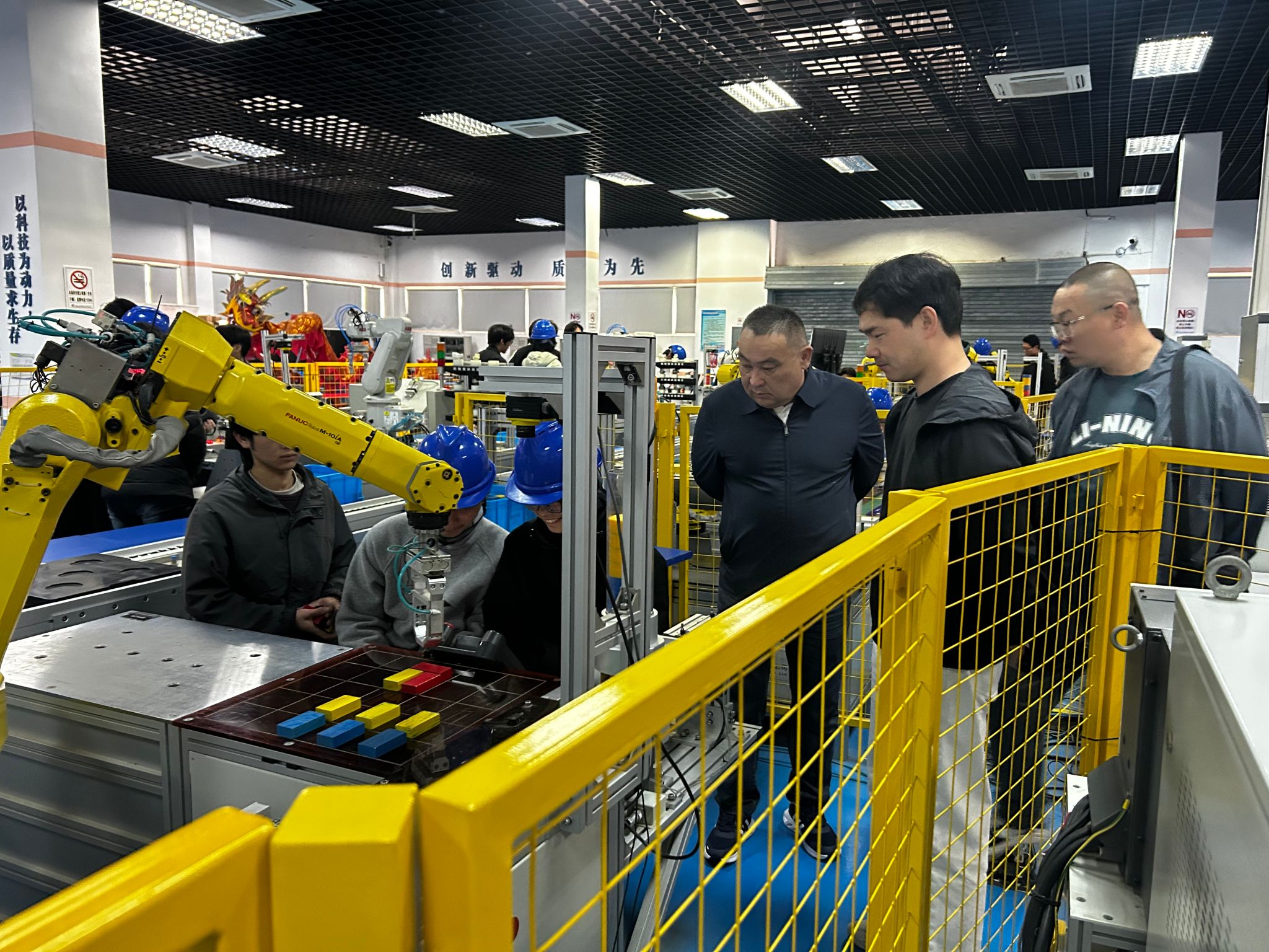 考察团一行首先实地走访我校智能制造学院,深入实训教学现场,详细了解专业建设规划、实训条件配置、教学组织实施及技术技能人才培养模式,就实训课程开发、实践教学管理等内容进行现场交流。