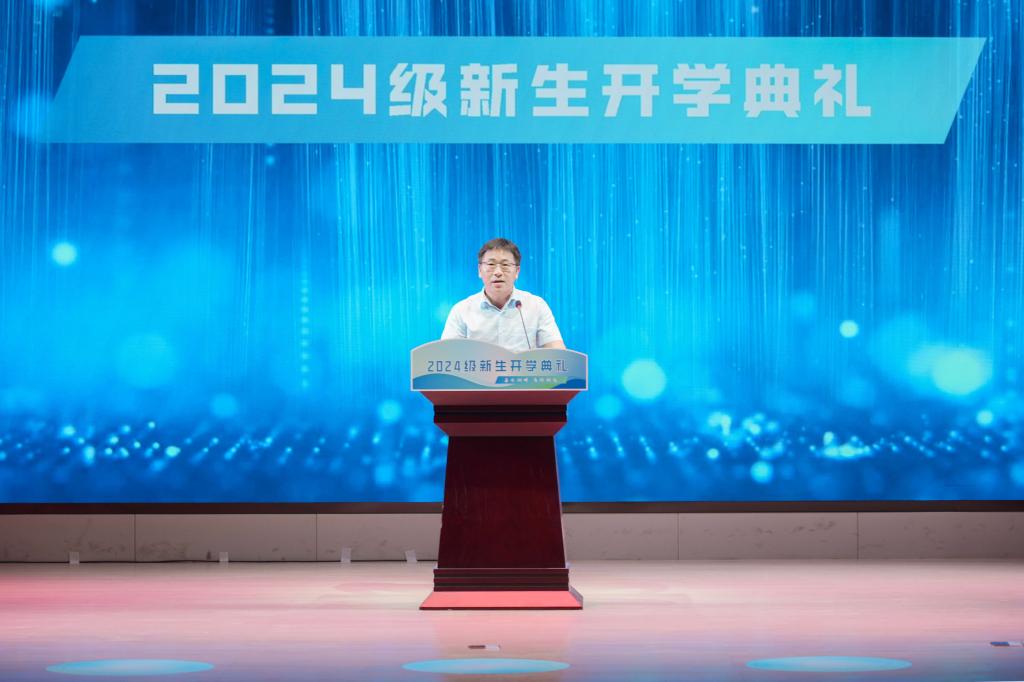 微风送爽,天朗气清,初秋的校园处处散发着勃勃生机,充溢着青春气息。9月8日下午,2024级新生开学典礼在闻道楼201报告厅举行。校党委副书记、校长权俊良,副校长吕中起、顾伟国、强晏红,各职能处室负责人、各学院负责人、教师代表、学生工作处与团委全体成员,全体2024级新生班师生参加了开学典礼,典礼由学工处副处长邱小霞主持。