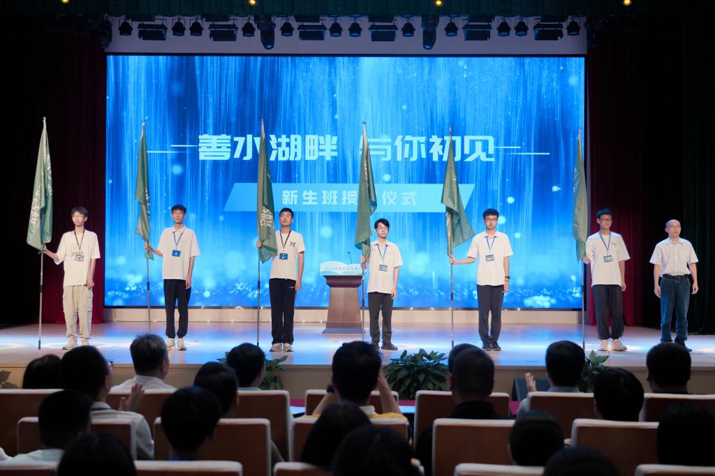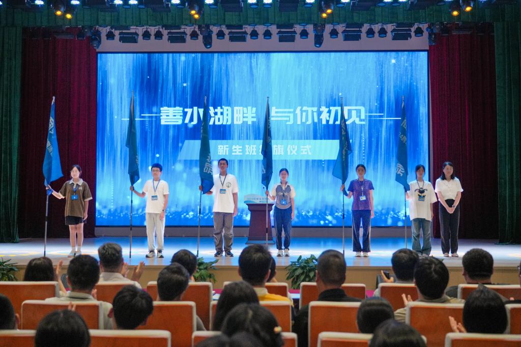 各二级学院院长郑重地将代表学院精神与期望的旗帜授予新生班级,全体新生们从接过旗帜的那一刻起,新一代工技校人将承担起自己的使命,着笔谱写属于自己的青春篇章。