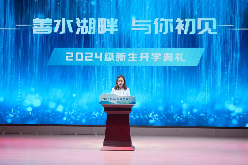 电子工程学院诸凌云代表新生班主任发言,她鼓励新生们要树立远大的目标,珍惜在校的每一分每一秒,刻苦学习,勇敢追梦。
