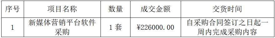 苏州诚联招投标咨询服务有限公司受苏州工业园区工业技术学校的委托,就其拟采购的新媒体营销平台软件采购项目进行竞争性谈判采购,现就对本次采购结果公布如下: