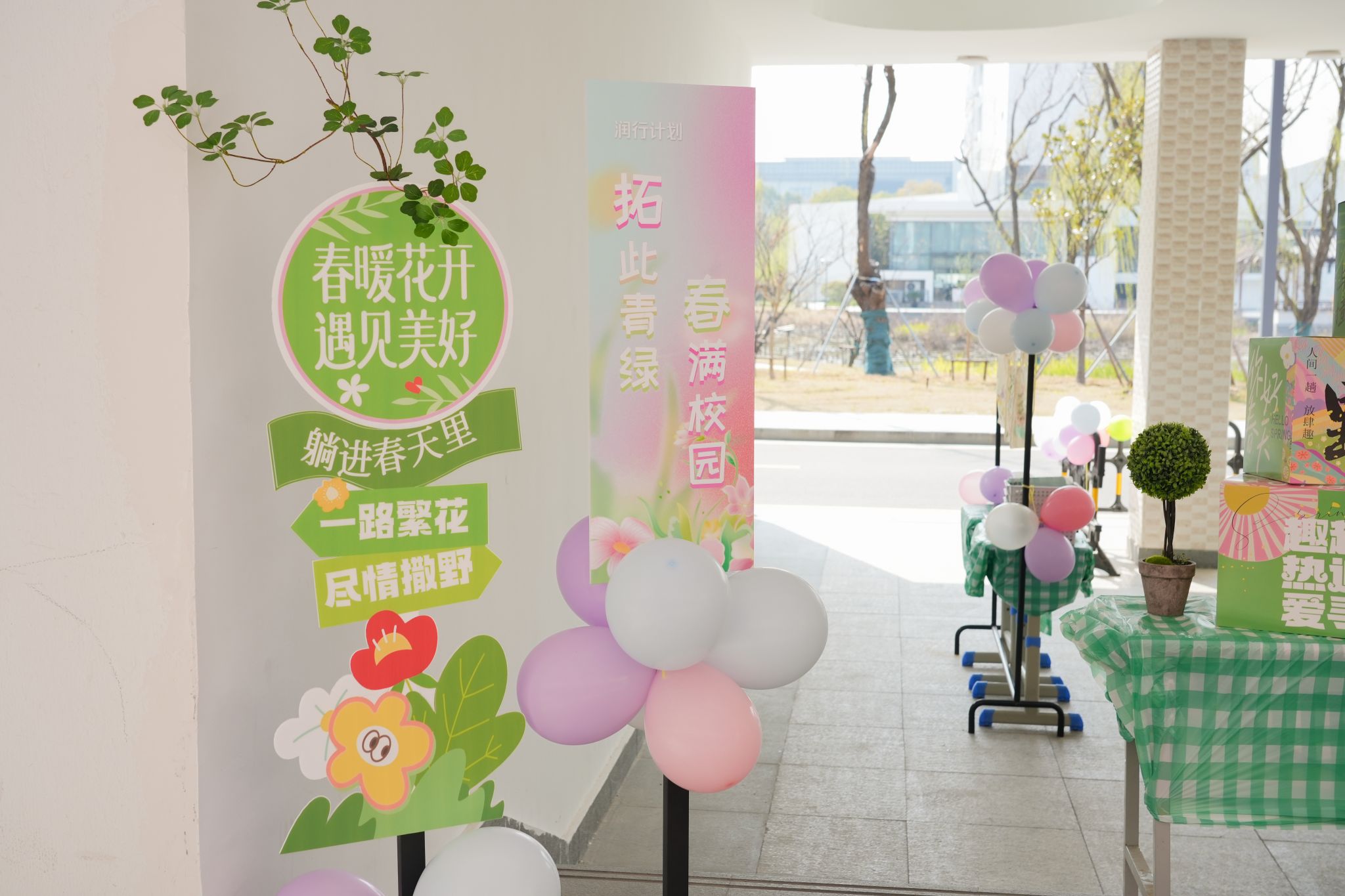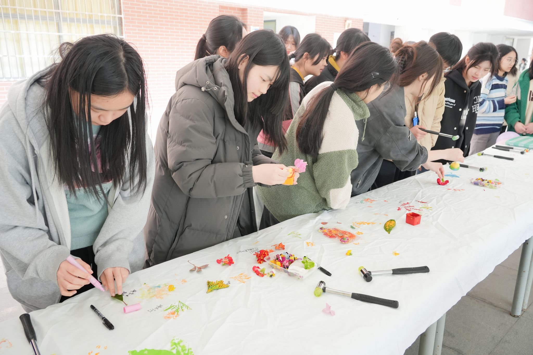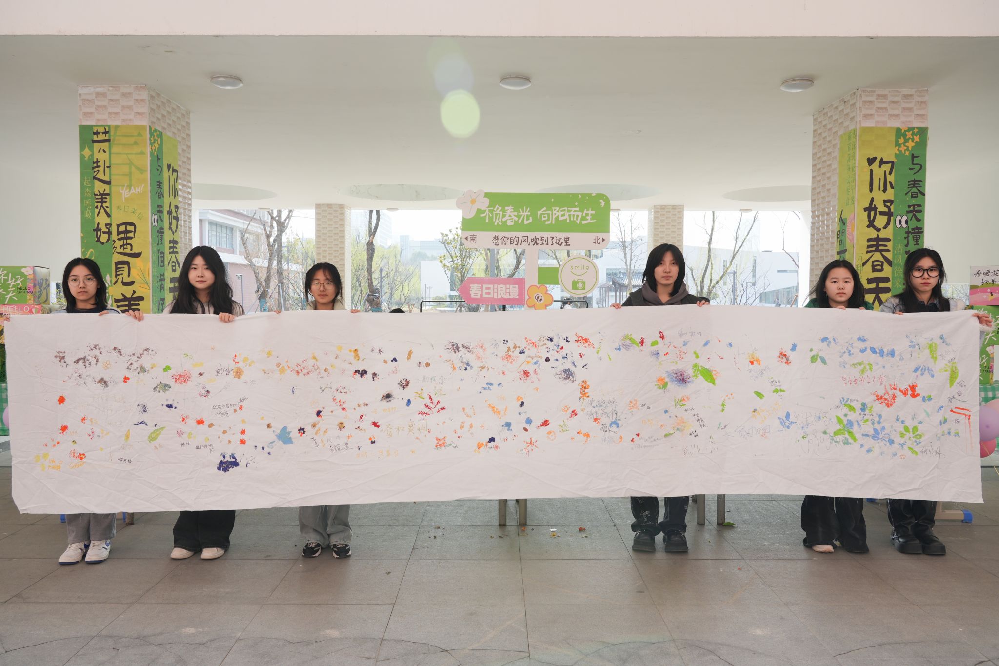 此外,活动现场还特别设立了“春分条幅创作区”。在这个区域里,师生们齐心协力,共同创作了一幅主题布艺长卷。长卷上,各种植物图案栩栩如生,仿佛将春天的气息永远定格。这一环节不仅促进了师生之间的互动与交流,也进一步弘扬了团结协作的精神。
