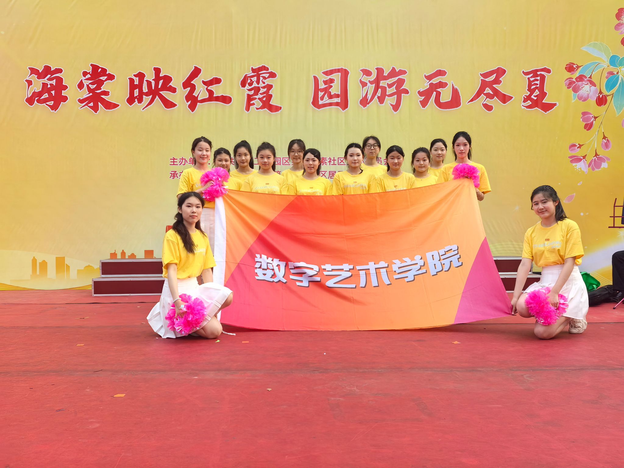 为加强学校与社区之间的交流互动,构建实践育人共同体,5月17日下午,我校善水灵动啦啦操队14名成员由学生工作处副处长邱小霞、数字艺术学院辅导员张虹带队,来到苏州工业园区第五元素社区参加“海棠映红霞 园游无尽夏”主题文艺晚会。作为学校文艺骨干力量的代表,善水灵动啦啦操队以青春洋溢的舞姿和饱满的热情为现场观众带来了一场充满活力的视觉盛宴。