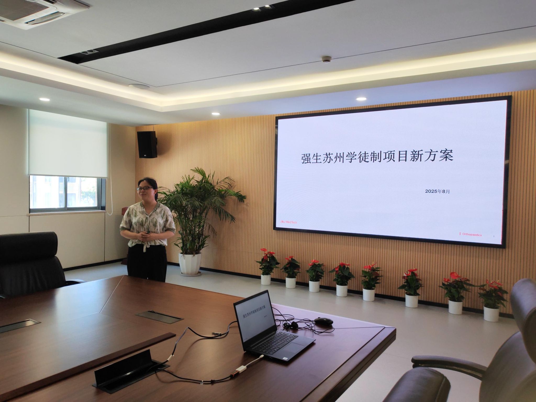 与会双方围绕“强生医疗学徒制项目合作”开展了深入且富有建设性的磋商。胡翔首先系统介绍了新方案中的人才培养机制、激励政策及职业发展通道等内容。夏峰进一步对比新旧方案,旨在为学徒描绘更清晰的成长路径。