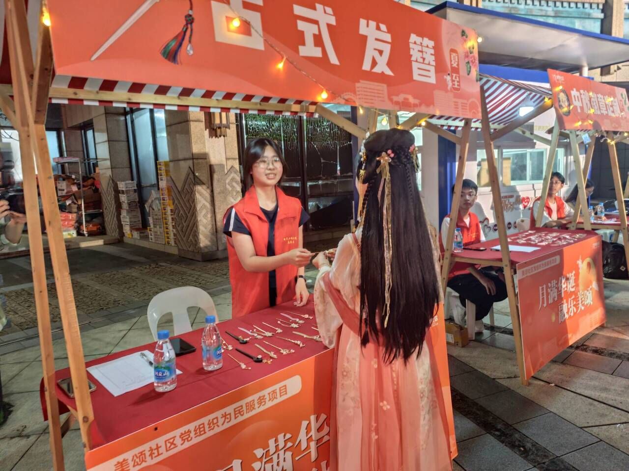 互动体验区里,志愿者们化身“民俗小讲师”,协助居民开展猜灯谜等活动,耐心讲解步骤与民俗知识。社区居民陈女士表示:“市集既有好吃的又有好看的,还有小志愿者们暖心帮忙,和邻居一起热闹过节,感觉特别开心。”