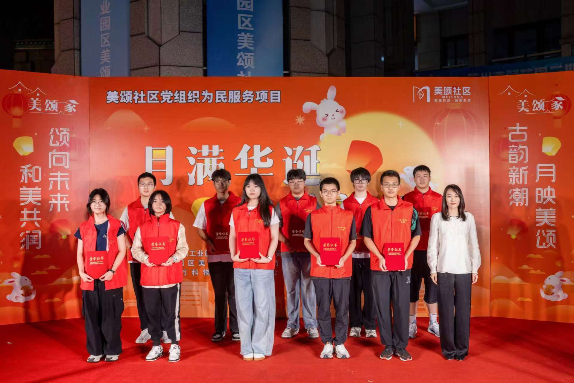 9月20日,电子工程学院20名学生志愿者助力苏州工业园区斜塘街道美颂社区“月满华诞·融乐美颂”喜迎国庆中秋游园市集活动并接受社区颁奖。双节盛会现场热闹非凡,青年志愿者们热情洋溢,同众多居民一同沉浸式感受节日的喜庆氛围。