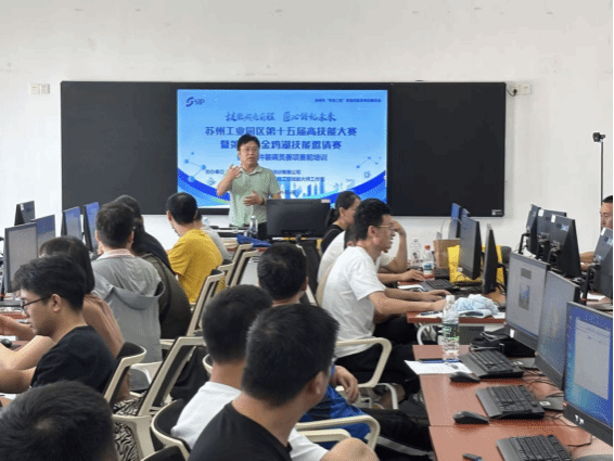 赛前,按照组委会委托,电子工程学院安排“苏州工业园区谢留婉技能大师工作室”,在8月30日和9月6日为选手进行线上与线下相结合的赛前培训,紧扣《智能硬件装调员》国家职业技能等级标准(三级 / 高级工)及竞赛要求,围绕智能硬件装调调试、系统部署等核心模块,将复杂的技术要点拆解为通俗易懂的内容,不仅覆盖竞赛必备的基础知识与技能技巧,还针对选手可能遇到的难点问题进行重点剖析,给出实用解决方案,为竞赛的顺利进行奠定了坚实基础。