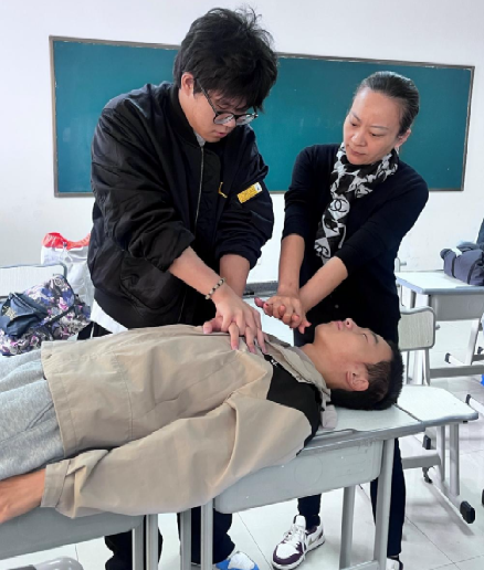 近日,我校智能制造学院21级智能医疗装备技术班的《基本救护技术》课程迎来了一场别开生面的教学实践。令人稍感意外的是,站在讲台上传授“气道异物梗阻急救”与“心肺复苏术”的,是该校音乐教师顾铮。在顾铮的引导下,课程变得生动而充满韵律,同学们在掌握救命技术的同时,也深刻感受到了节奏与协作的力量。