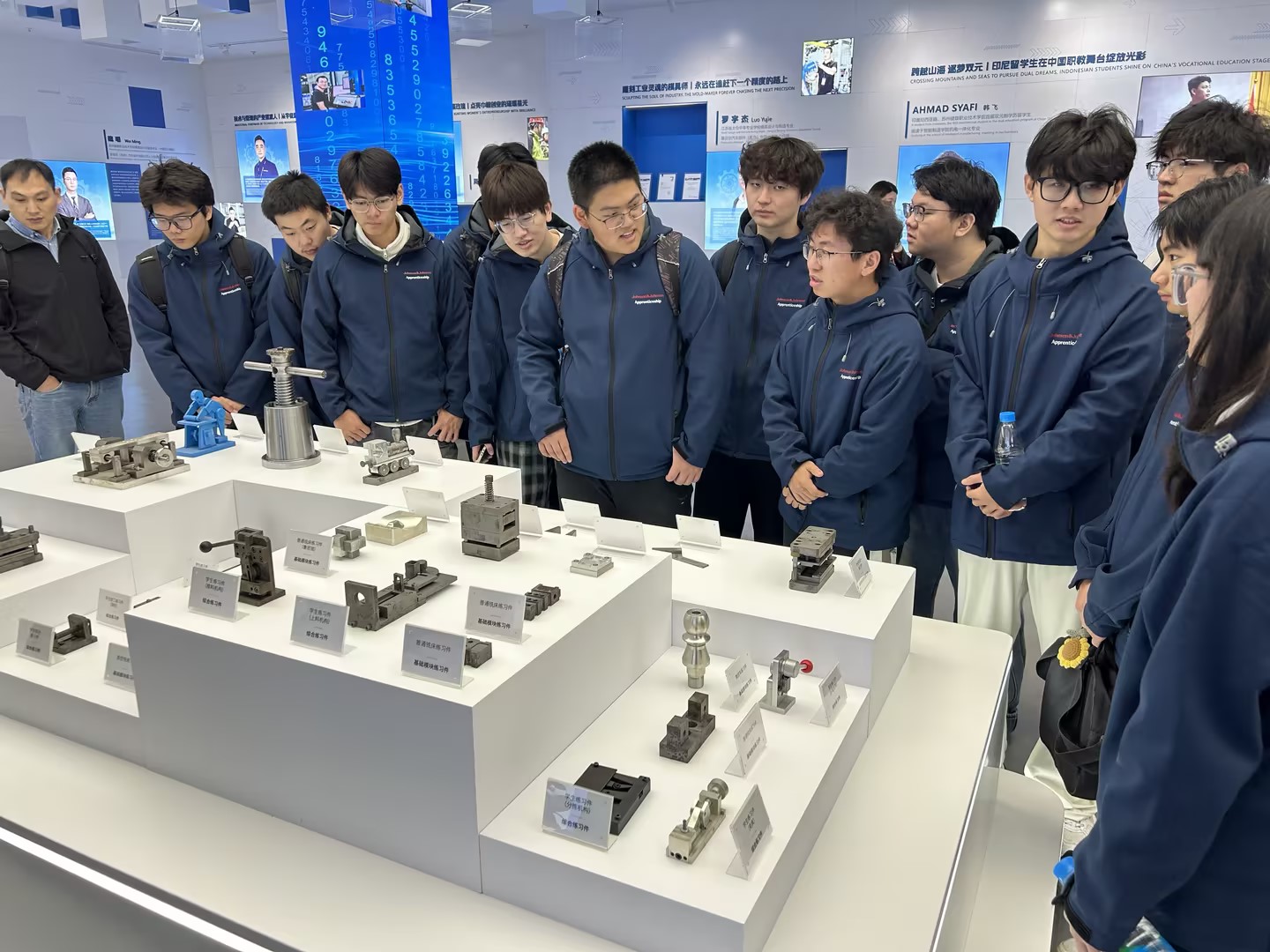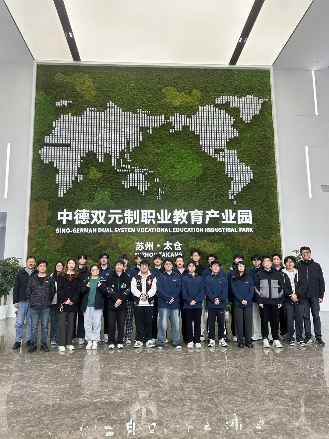 为全面探索校企协同育人创新路径,推动产教融合示范项目高质量发展,11月12日,智能制造学院副院长成晨带队,21级强生学徒班、21级博世学徒班的学生,在企业导师以及教师周栋华、顾莉莉的陪同下,共赴太仓中德双元制职业教育产业园“沉浸式”学习。作为太仓对德合作的重要平台,该产业园集技能培训、考试认证、产教研究等功能于一体,为学生提供了近距离感受“双元制”教育魅力的宝贵机会。