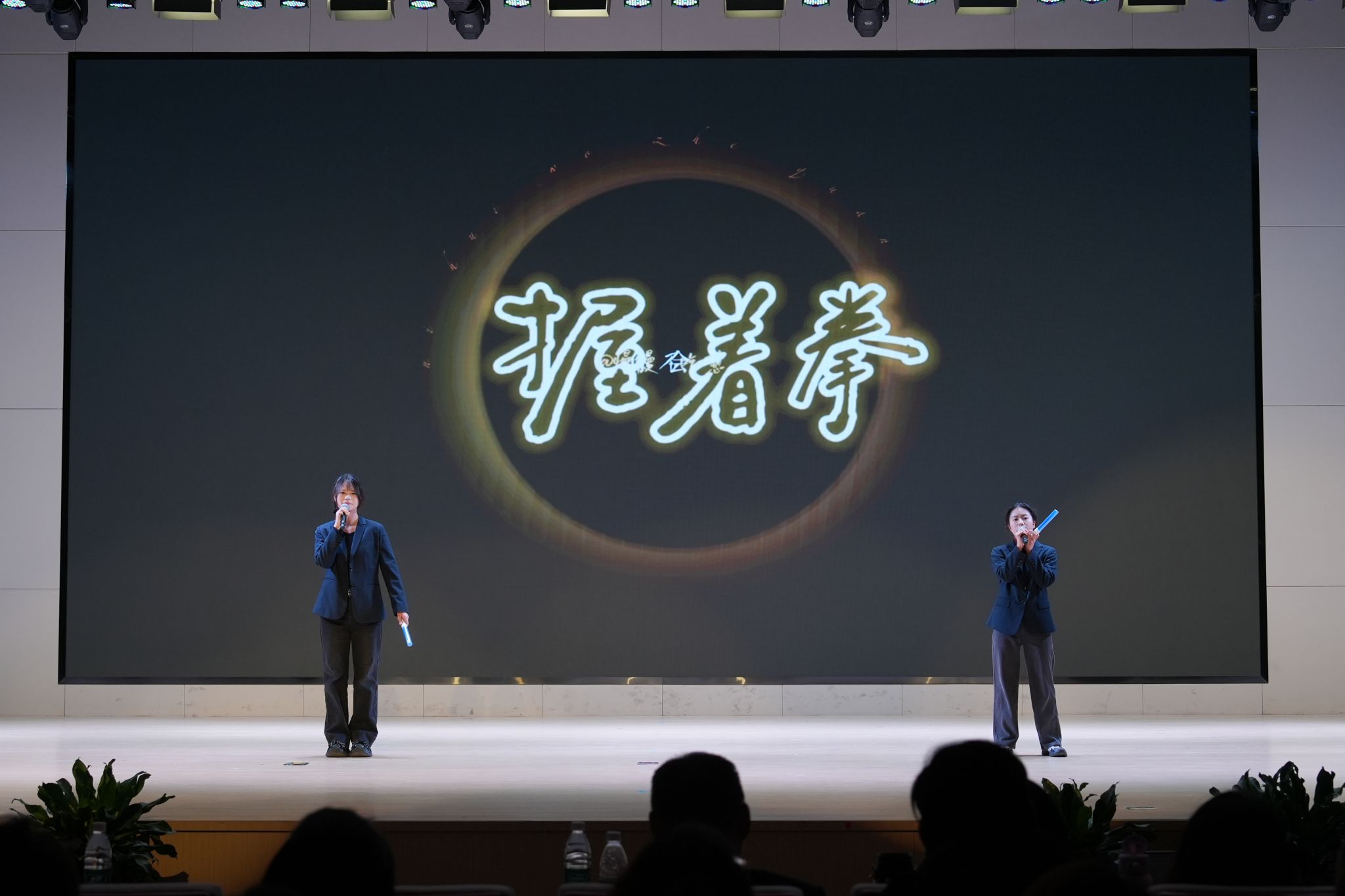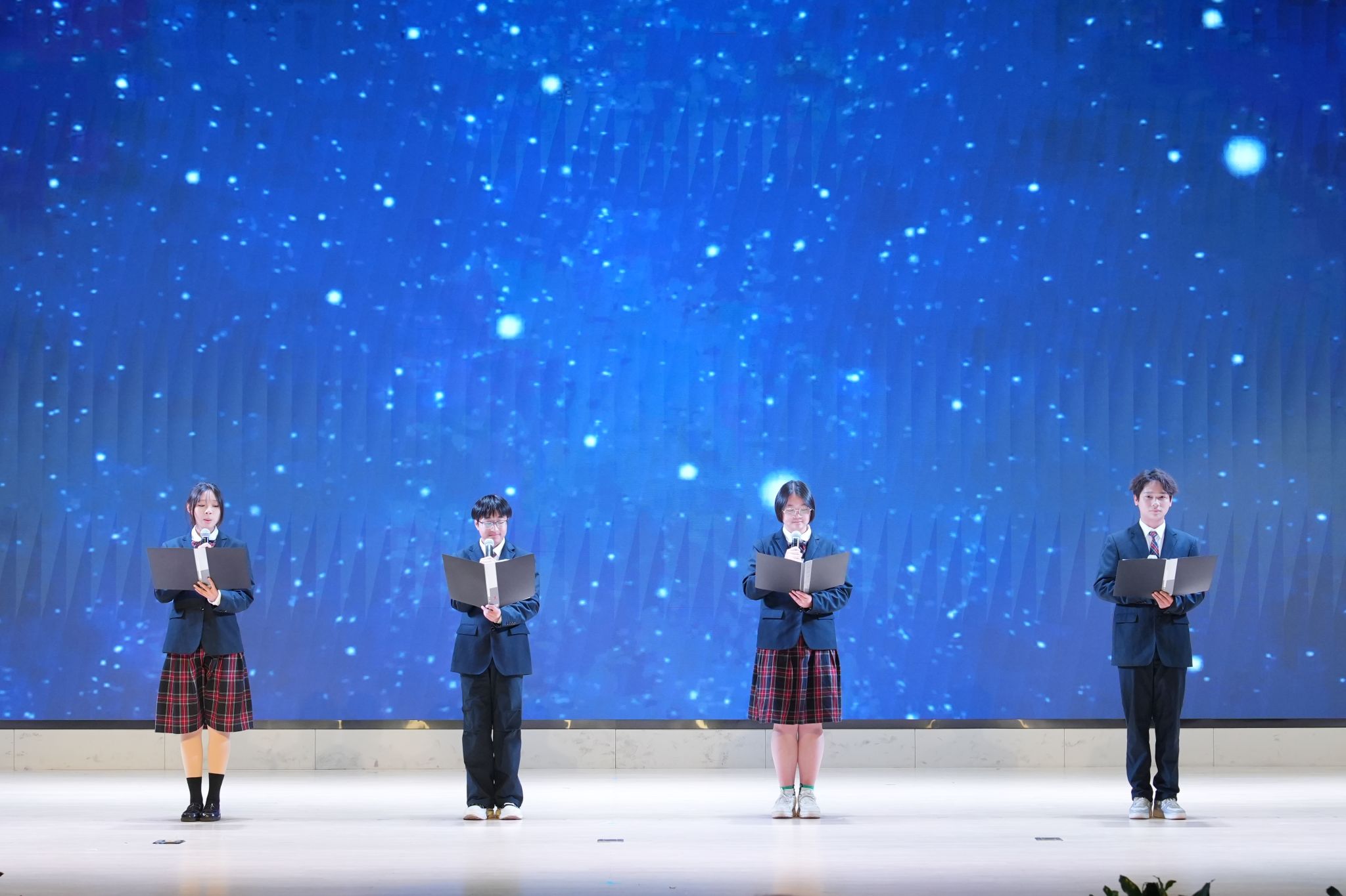 活动中,校园艺术节获奖作品朗诵《带着星光远航》与歌曲演唱《亲爱的你啊》穿插进行,既展示学子全面发展的青春风采,也为典礼注入了人文温度与情感共鸣。