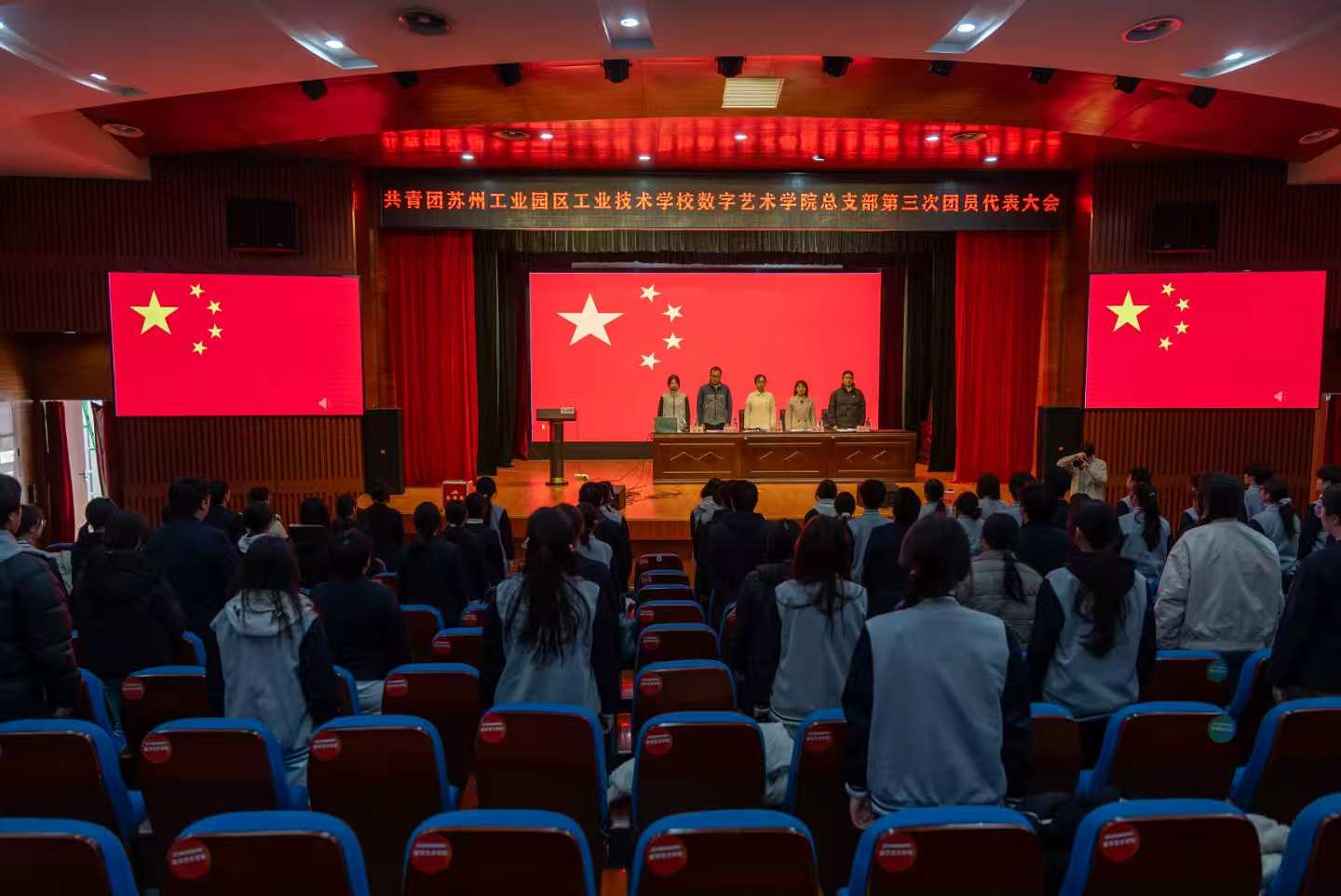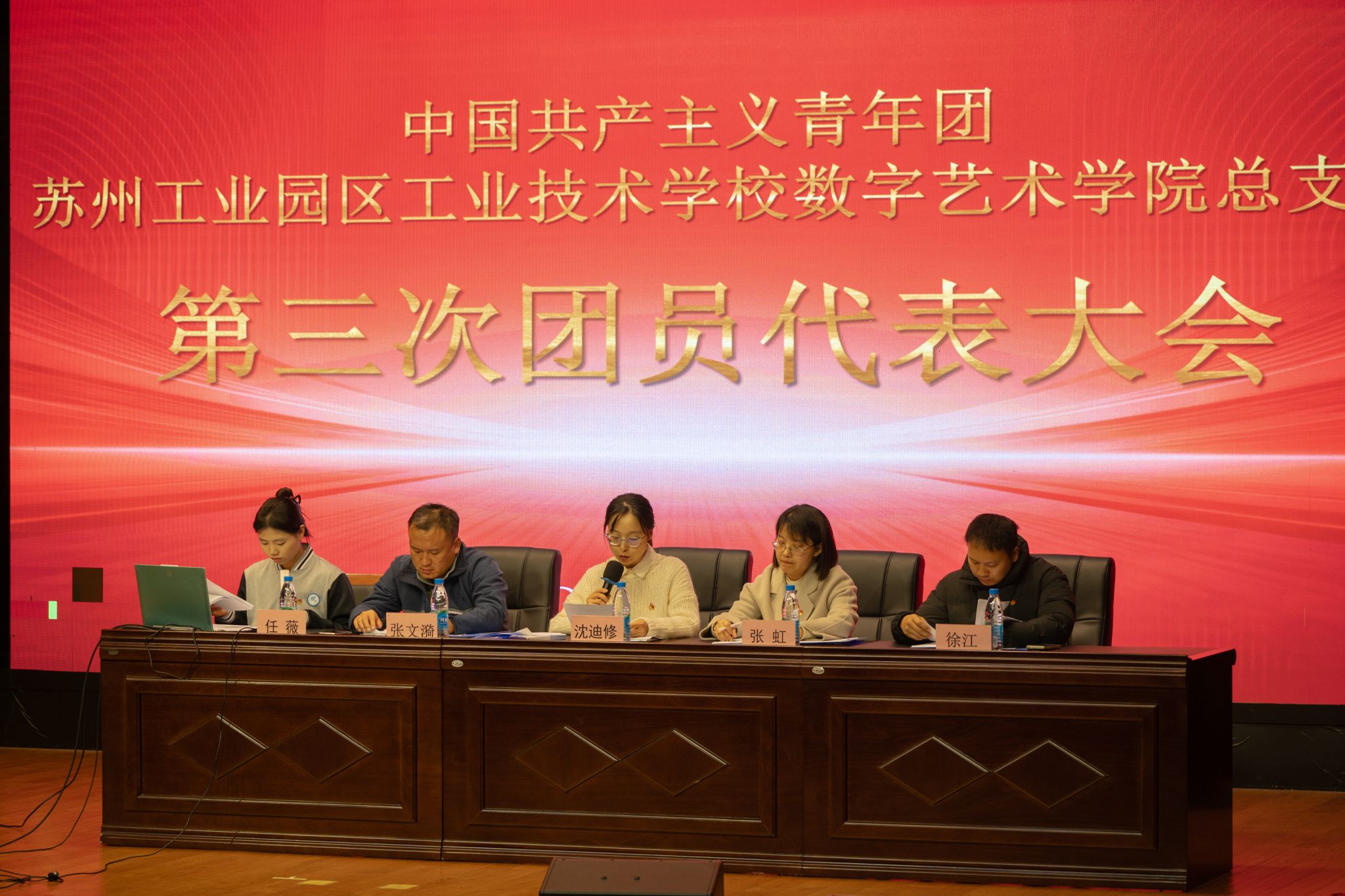 近日,共青团苏州工业园区工业技术学校数字艺术学院总支部第三次团员代表大会在善仁楼影剧院顺利召开。学院党支部委员沈迪修老师、团总支书记张虹老师、团总支委员张文漪老师、徐江老师等出席大会,70名团员代表肩负全院共青团员的重托参加本次会议。