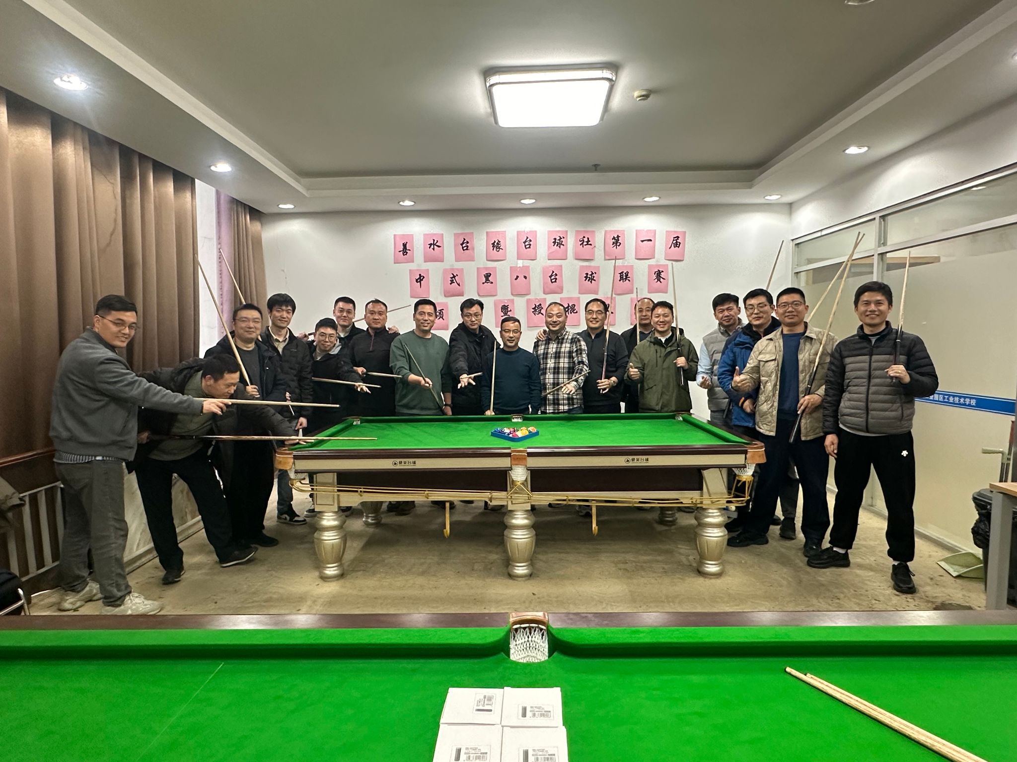 近日,我校首届教职工中式黑八台球比赛在校教工台球室圆满落幕。本次赛事由新成立的“善水台缘”台球社团策划组织,历时一个月,吸引了来自各学院及职能部门的20多名教职工参与,展现了教职工们积极向上的精神风貌与跨部门交流的活力。