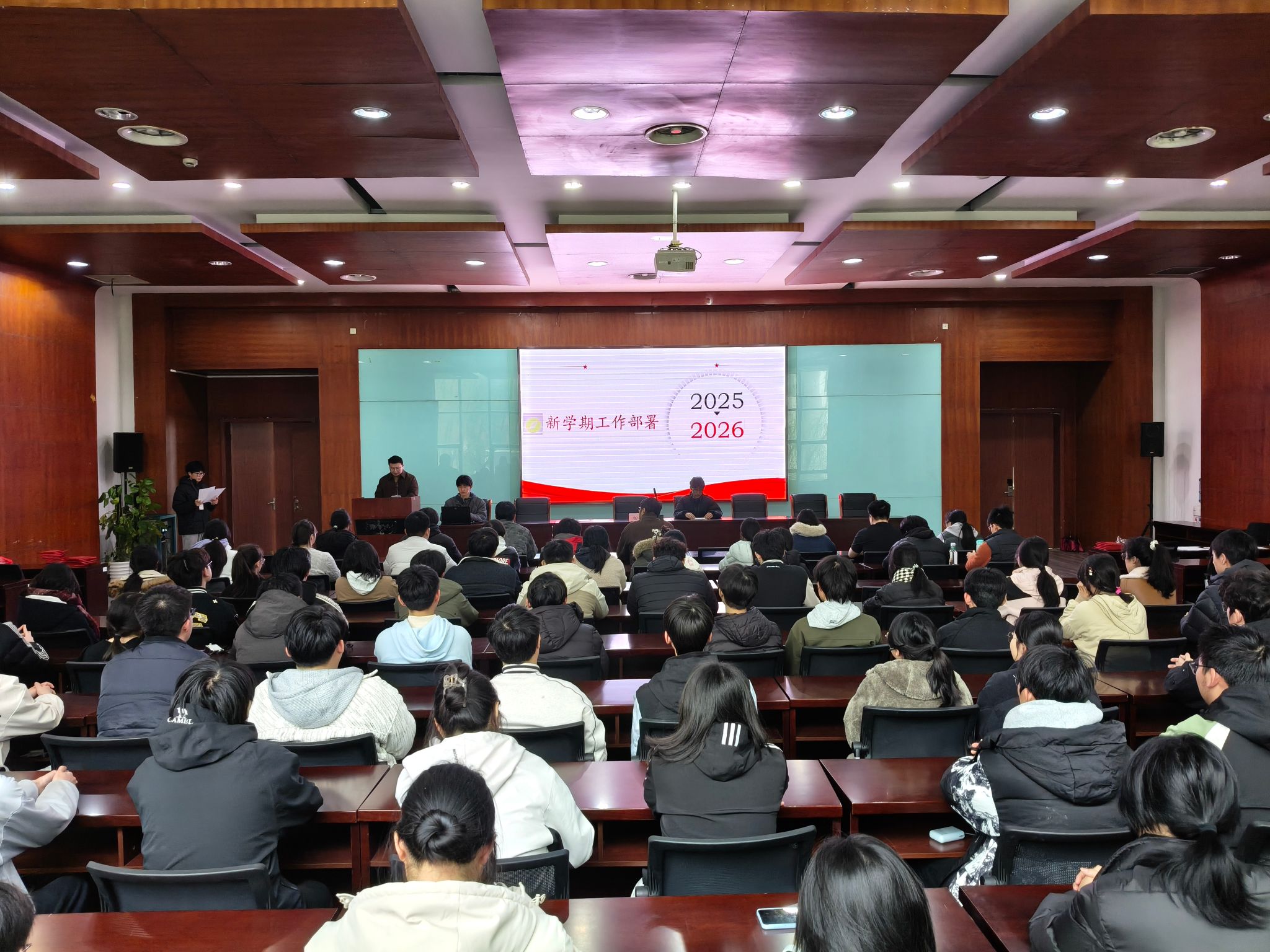 2026年3月18日,智能制造学院团总支在善仁楼报告厅召开2026年团学工作动员会暨表彰大会。学院党支部副书记成晨、团总支书记高乐、委员冯子辰以及学院学生会全体成员共同出席本次活动。会议聚焦表彰先进、部署年度重点任务,为2026年学院团学工作的开展凝聚共识,明确行动方向。