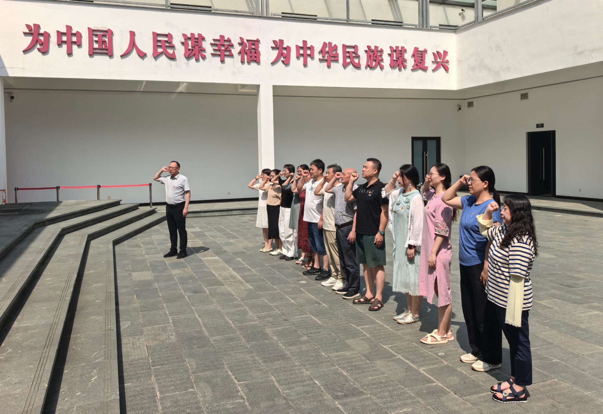 7月29日上午,大家走进谷文昌扁担博物馆。昔日东山风沙肆虐,谷文昌带领群众种木麻黄;今天,东山绿树成荫,他的扁担却始终挑着“为民”的分量。在“执政为民”主题展厅,一张1963年的木麻黄种植统计表让大家流连驻足。泛黄的纸页上,密密麻麻记着每个村的树木成活率、每棵树的生长数据。“这不是一张普通的表格,而是一位党员对‘群众需求’最朴素的回应。”青年教师蒋凤娟说,“我们在课堂上常讲‘以人民为中心’,今天才真正明白,这‘中心’是谷文昌般刻在骨子里的牵挂。”随后,在纪念广场的党旗下,全体党员教师在机关第三党支部书记吴旭的带领下重温入党誓词。铿锵的誓言回荡在太行山间,让“心中有党、心中有民”的信念更深地扎根心田。