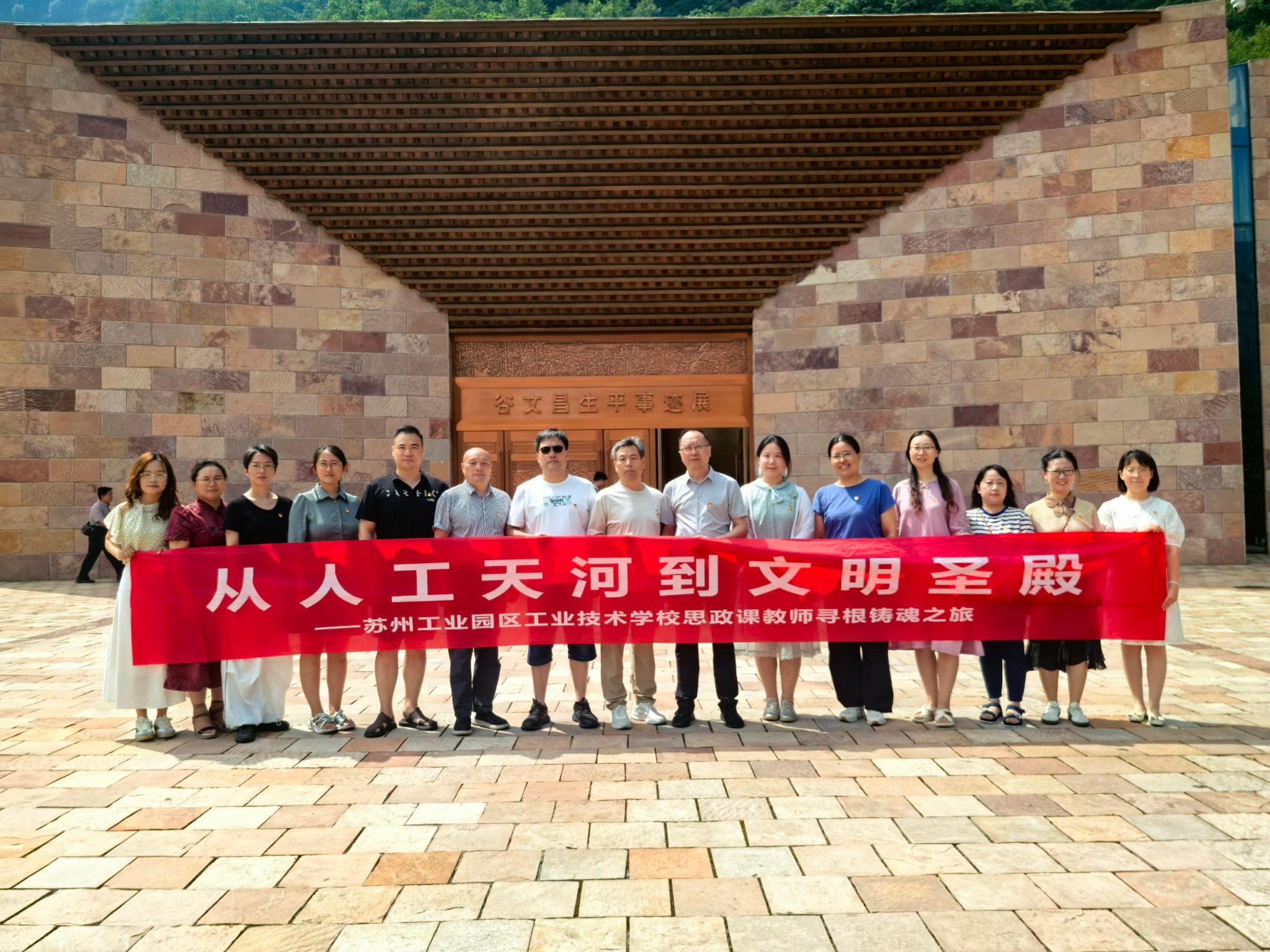 7月28日、29日,我校15名思政课专兼职教师在校领导吕中起、马克思主义学院院长何语华的带领下,踏上了一场跨越千里的“寻根铸魂”之旅。从林州红旗渠的“人工天河”到安阳殷墟探寻“文明密码”,从谷文昌扁担博物馆感悟公仆情怀到青年洞聆听铿锵誓言,两天的沉浸式学习实践,不仅是一场教学灵感的“充电之行”,更是一次精神的洗礼。