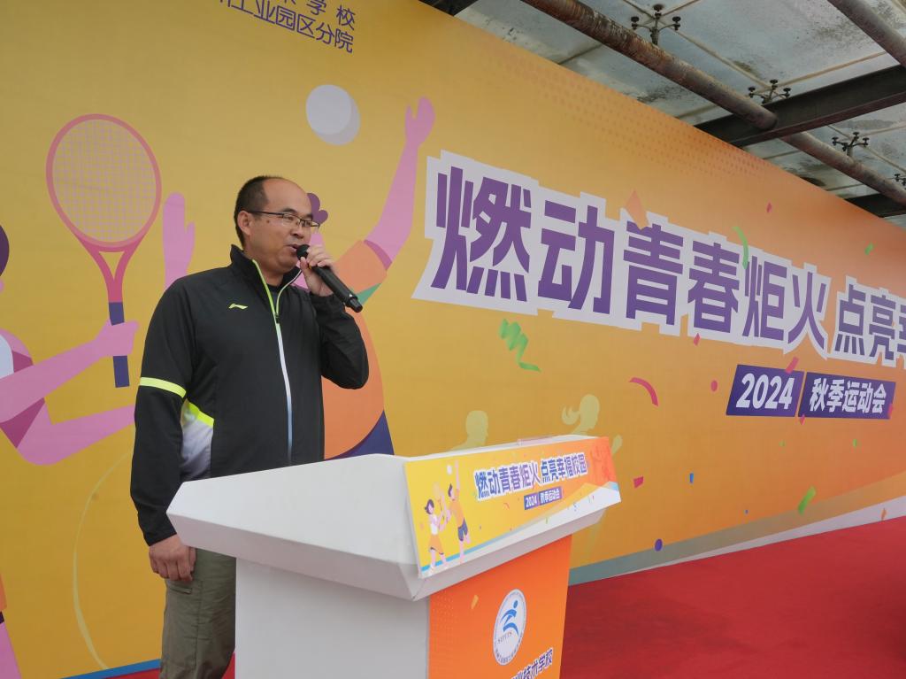 燃动青春炬火,点亮幸福校园。10月16日上午,我校2024年秋季运动会在学校体育场开幕。校长权俊良,副校长吕中起、顾伟国、强晏红,各二级学院院长及相关师生参加了开幕式。开幕式由基础教学部主任吴旭主持。