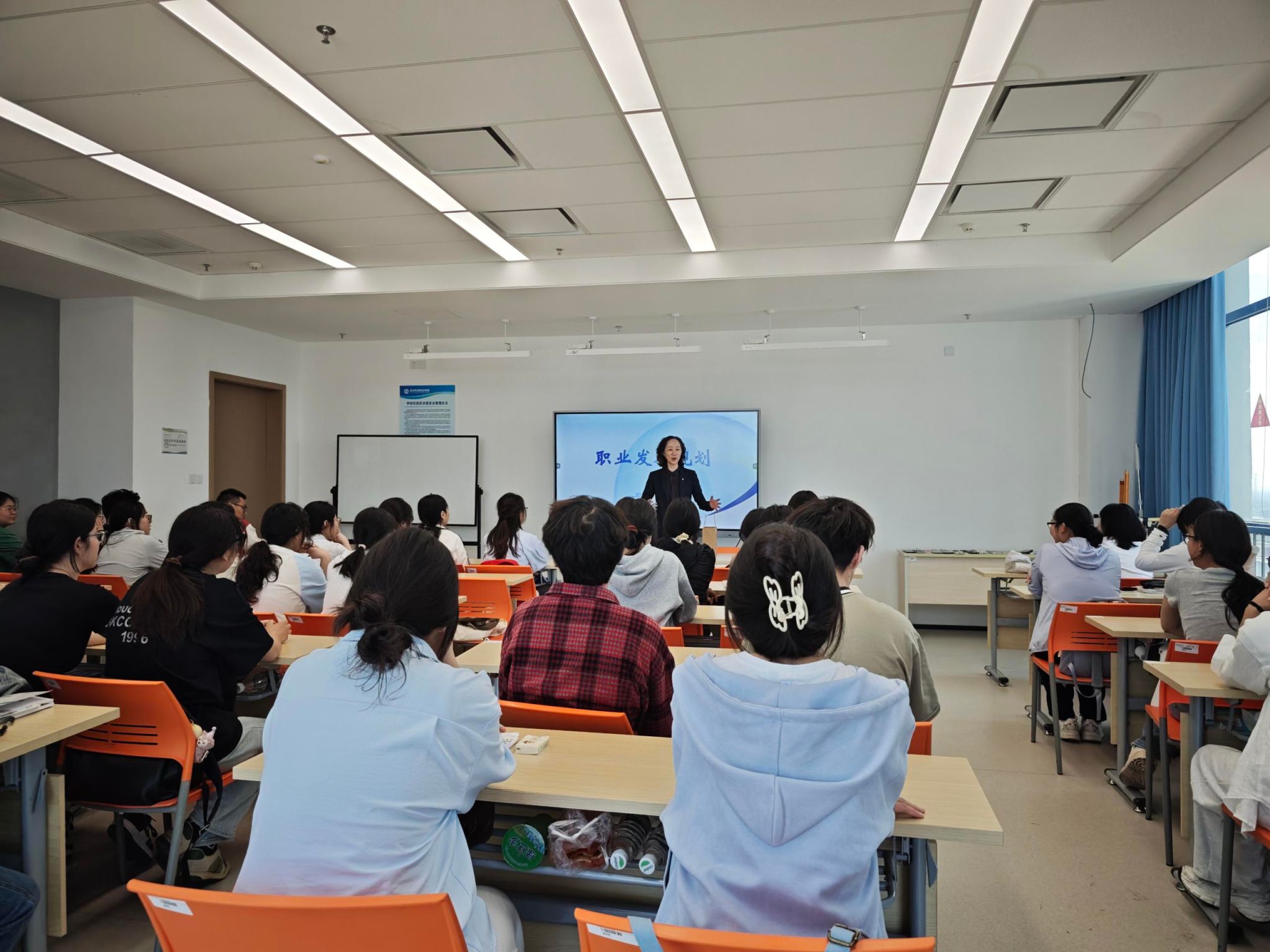 当谈及如何选择职业方向这一关键问题时,潘雅琴语重心长地给同学们提出了宝贵建议。她鼓励同学们要充分了解自己的兴趣所在、优势特长以及内心深处的价值观,将这些个人特质与市场需求和行业发展趋势紧密结合起来,精准找到属于自己的职业定位。同时,她提醒同学们要充分利用在校的宝贵时光,像海绵吸水一样扎实学好专业知识,积极参加各类实践活动,在实践中锻炼自己,提升综合素质和职业能力,为未来的职业发展打下坚实的基础。