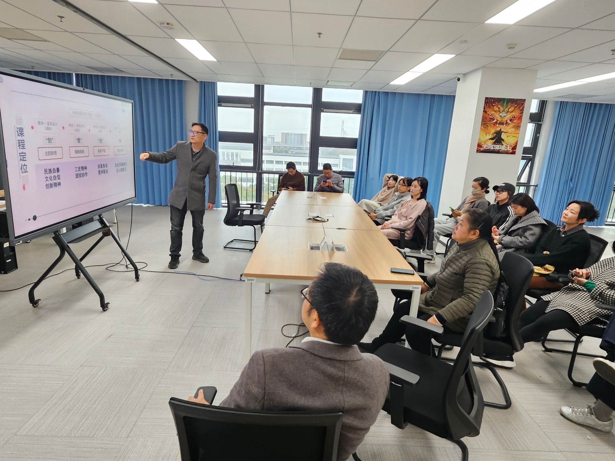 活动还特别邀请2025年江苏省教学大赛一等奖获得者顾正寅老师分享教学创新经验。顾老师以获奖作品《封神pbr流程游戏道具制作》为例,详解从选题构思到技术实现的备赛历程,并坦言"突破传统教学框架,让学生在真实项目中成长"的教学心得和备赛的心路历程,引发热烈共鸣,有效提升了教师团队的教学创新意识与团队凝聚力,为两专业持续输出高水平人才注入新动能。
