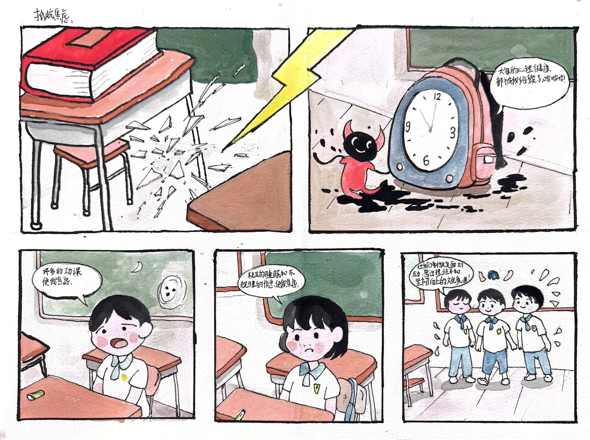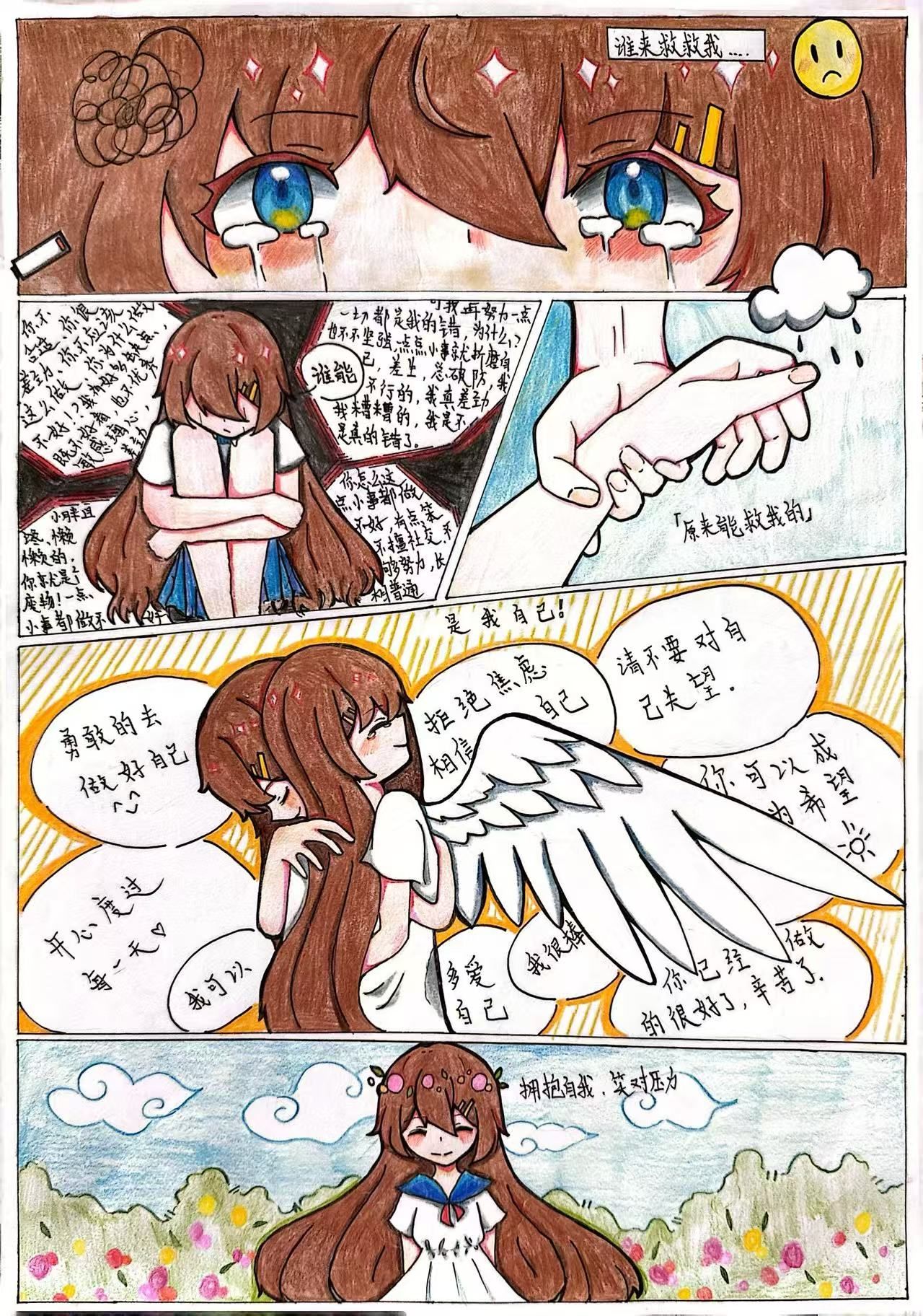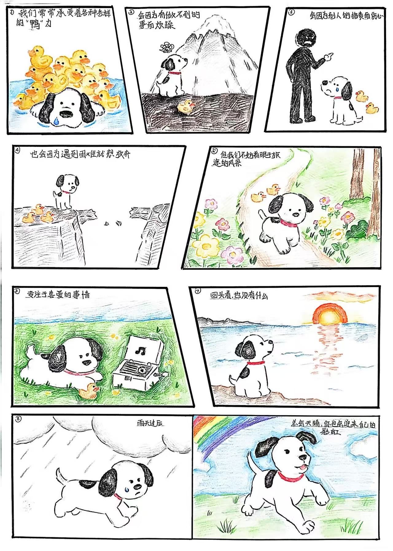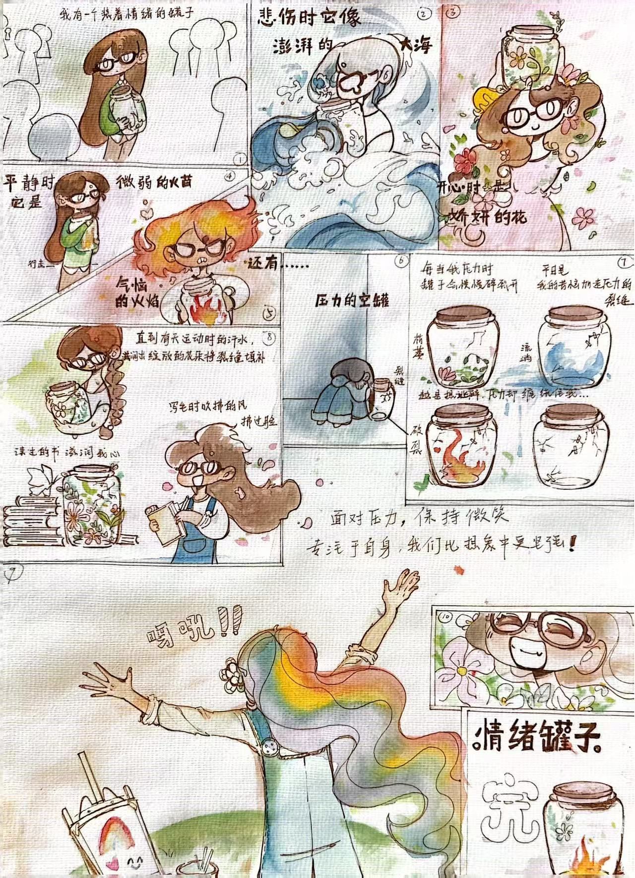 心理漫画设计大赛聚焦“情绪管理与压力应对”主题,面向全体学生征集以校园生活、成长困惑、心理调适为核心素材的原创漫画作品。活动鼓励以多宫格形式,运用夸张、隐喻、拟人化等艺术手法,将抽象的情绪体验转化为可视化的图文叙事。本次活动以漫画故事汇的形式传递压力应对的多元策略,引导学生接纳情绪波动的必然性,掌握科学调适方法,在图文共鸣中培育“与压力共舞”的积极心态,营造理性平和、坚韧向上的校园心理文化氛围。