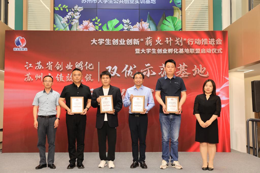 5月26日下午,大学生创业创新“薪火计划”行动推进会暨大学生创业孵化基地联盟启动仪式在苏州市大学生公共创业实训基地成功举办。江苏省劳动就业管理中心副主任曹小燕、苏州市人力资源和社会保障局副局长谭国明、苏州市劳动就业管理服务中心主任俞晓峰等出席了本次活动。启动仪式现场介绍了大学生创业创新“薪火计划”项目,并为4家江苏省创业孵化、苏州市绩效A级双优示范基地授牌,我校学生工作处处长王凯代表学校接受“双优基...